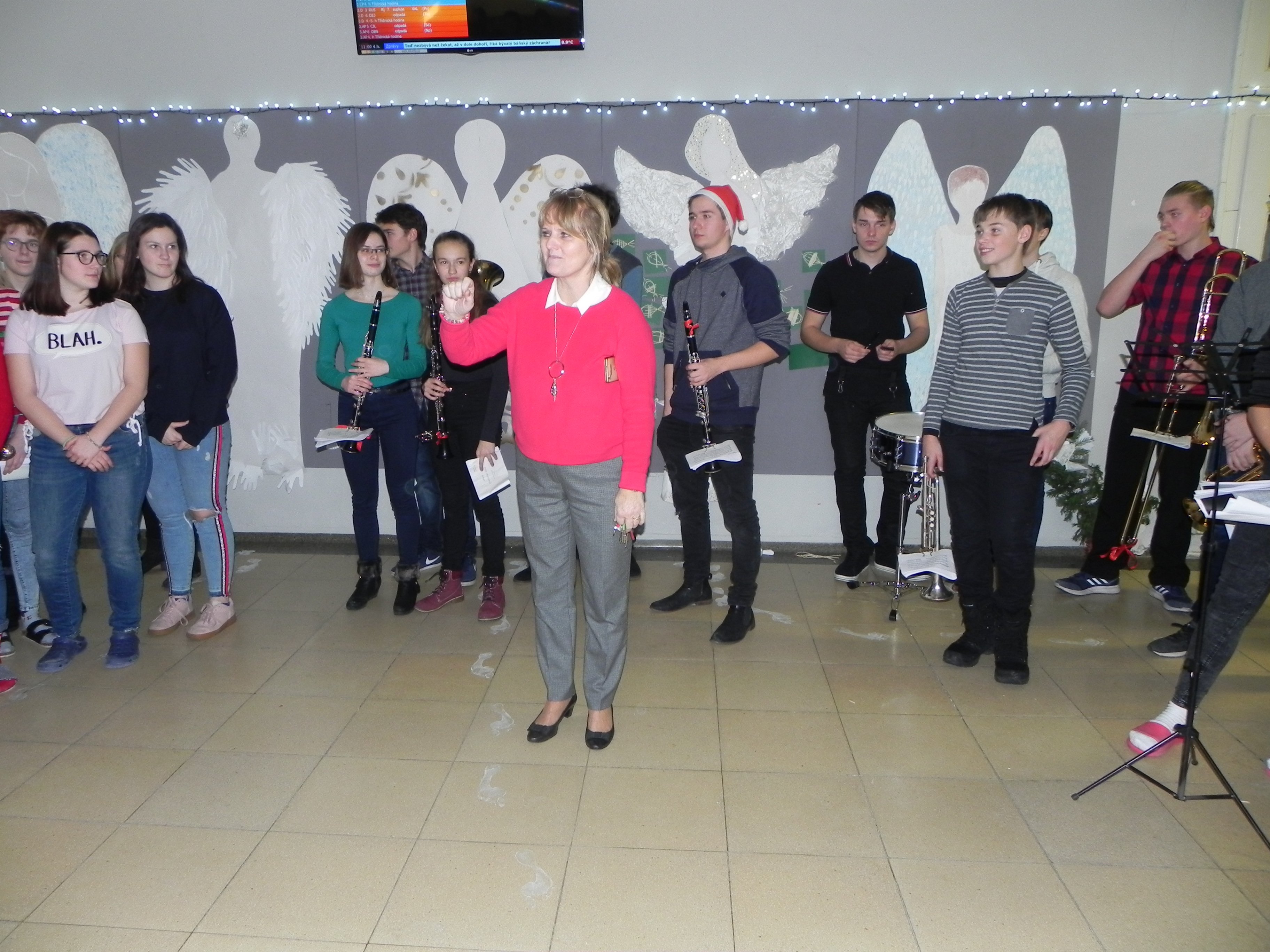 Před budovou gymnázia nás poslední den tohoto roku tradičně přivítali s živým betlémem žáci kvinty. Rozezněly se vánoční koledy, které si připravili žáci pěveckého sboru v doprovodu školní kapely. Pod vedením Mgr. Beranové a Mgr. Berky zazněly koledy také ve vestibulu pedagogické školy, kde se ke zpěvu přidali i žáci postávající kolem. Na závěr všem žákům a učitelům popřála paní ředitelka šťastné a veselé Vánoce.