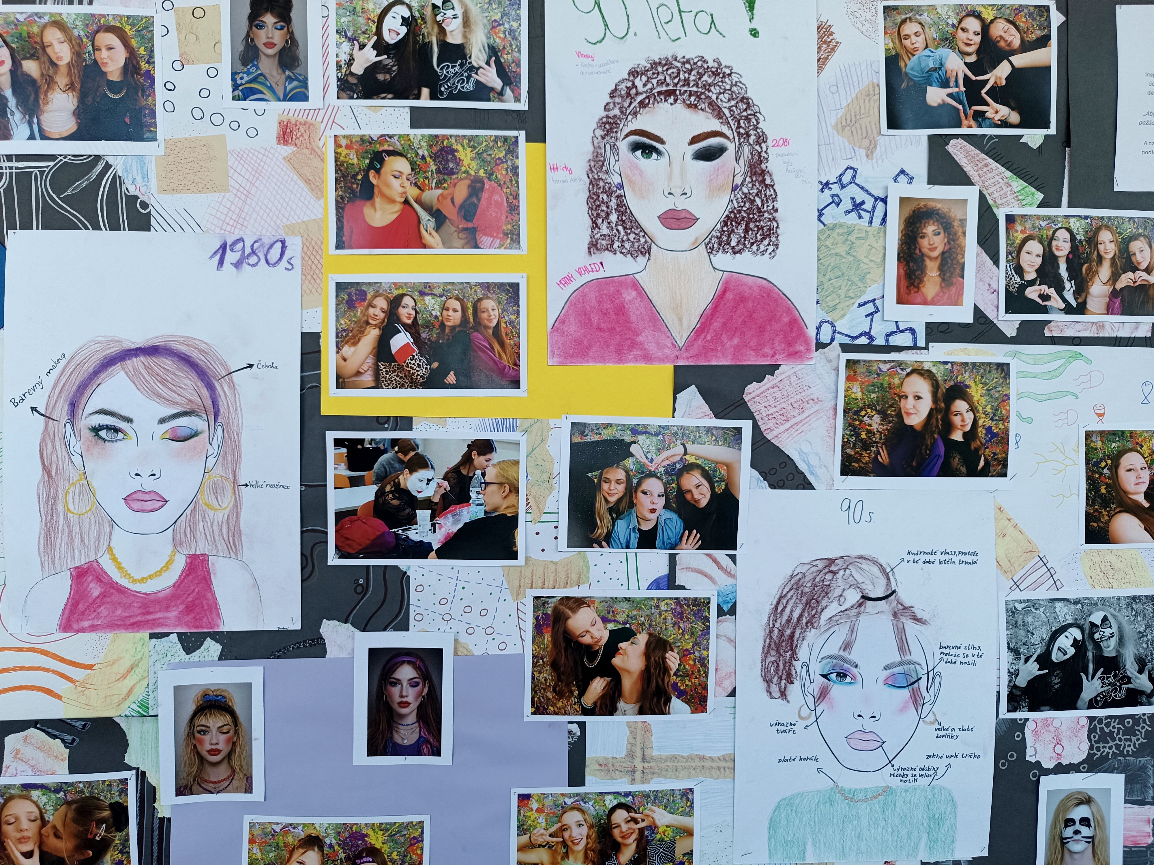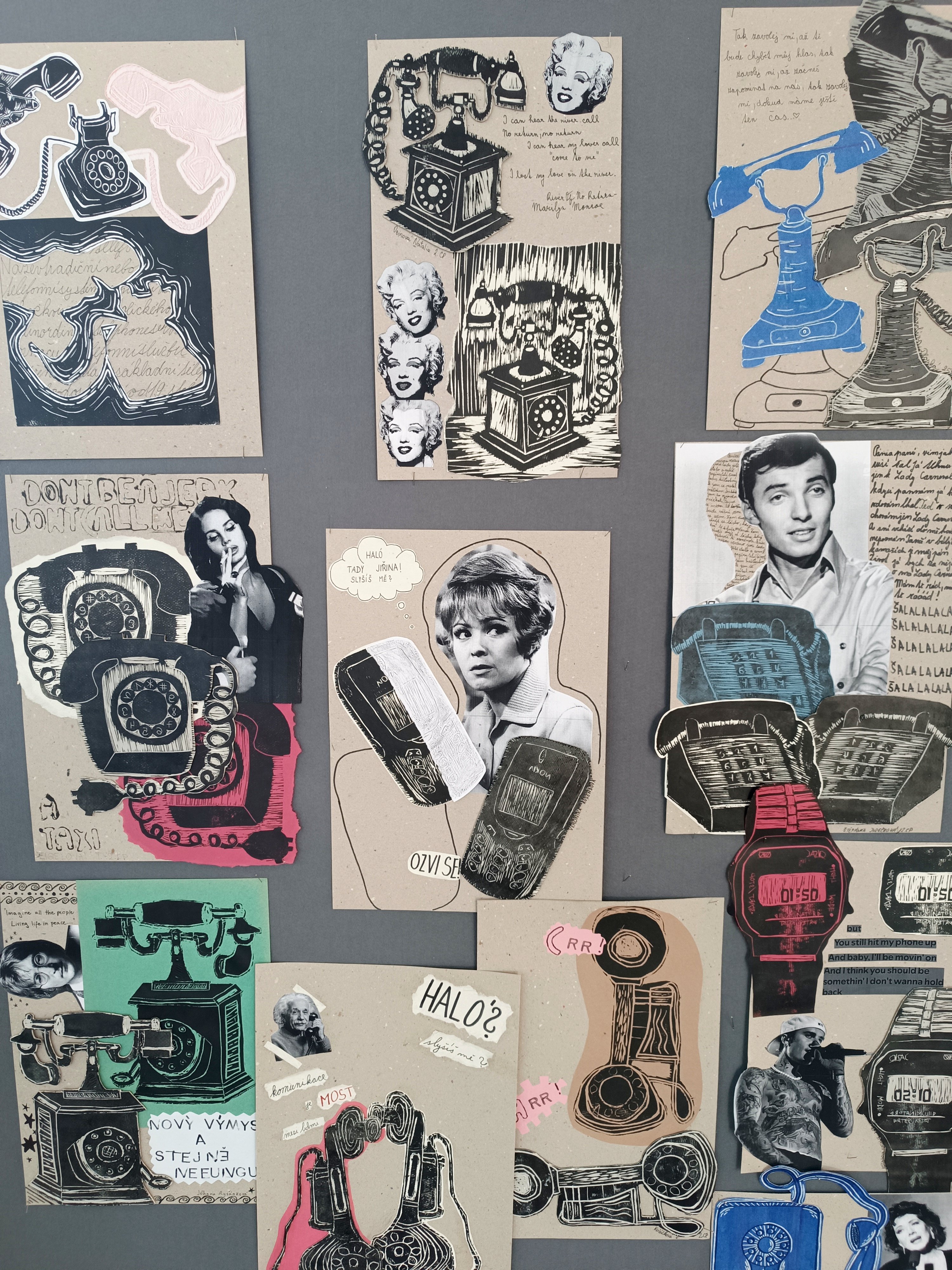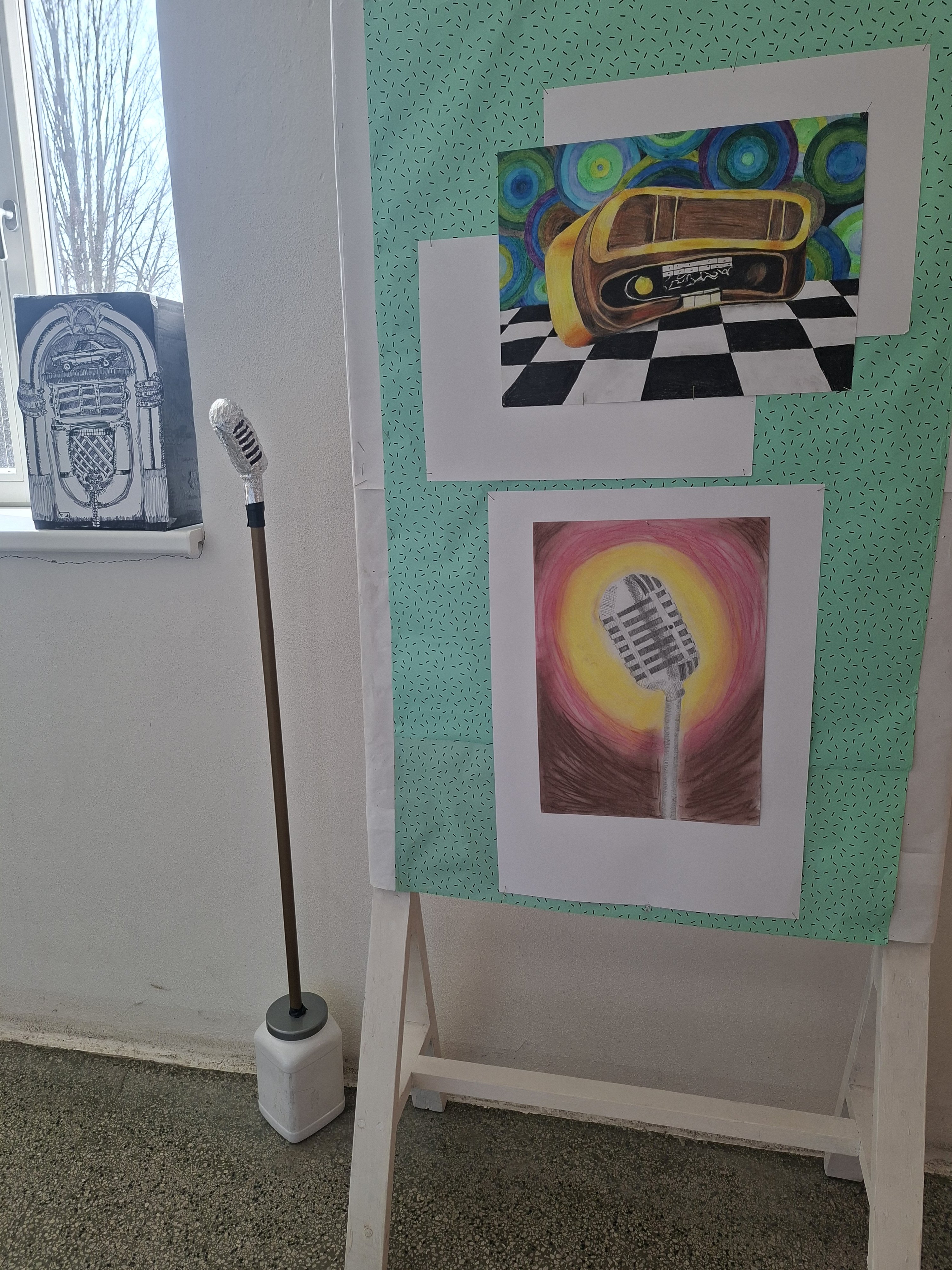 Na výstavě jsou tedy zastoupeny různé výtvarné techniky – od kresby a malby přes grafiku až po kombinované techniky i prostorové práce. Každé dílo nese osobitý rukopis svého autora a odráží nejen studijní zadání, ale také individuální pohled studentů na zvolené téma. Součástí výstavy jsou také tematické instalace, které návštěvníky přenášejí do atmosféry minulých let. K vidění je například stylizované retro hračkářství, cukrárna, dětský pokoj, kadeřnictví či krejčovský salon. Zajímavou částí expozice je také přehlídka starších technických zařízení, například telefonů, kazeťáků, hudebních nosičů a dalších předmětů, které dnes již patří spíše do historie každodenního života. Výjimečným objektem celé výstavy je kartonová telefonní budka, která patří k nepřehlédnutelným a originálním prvkům instalace.