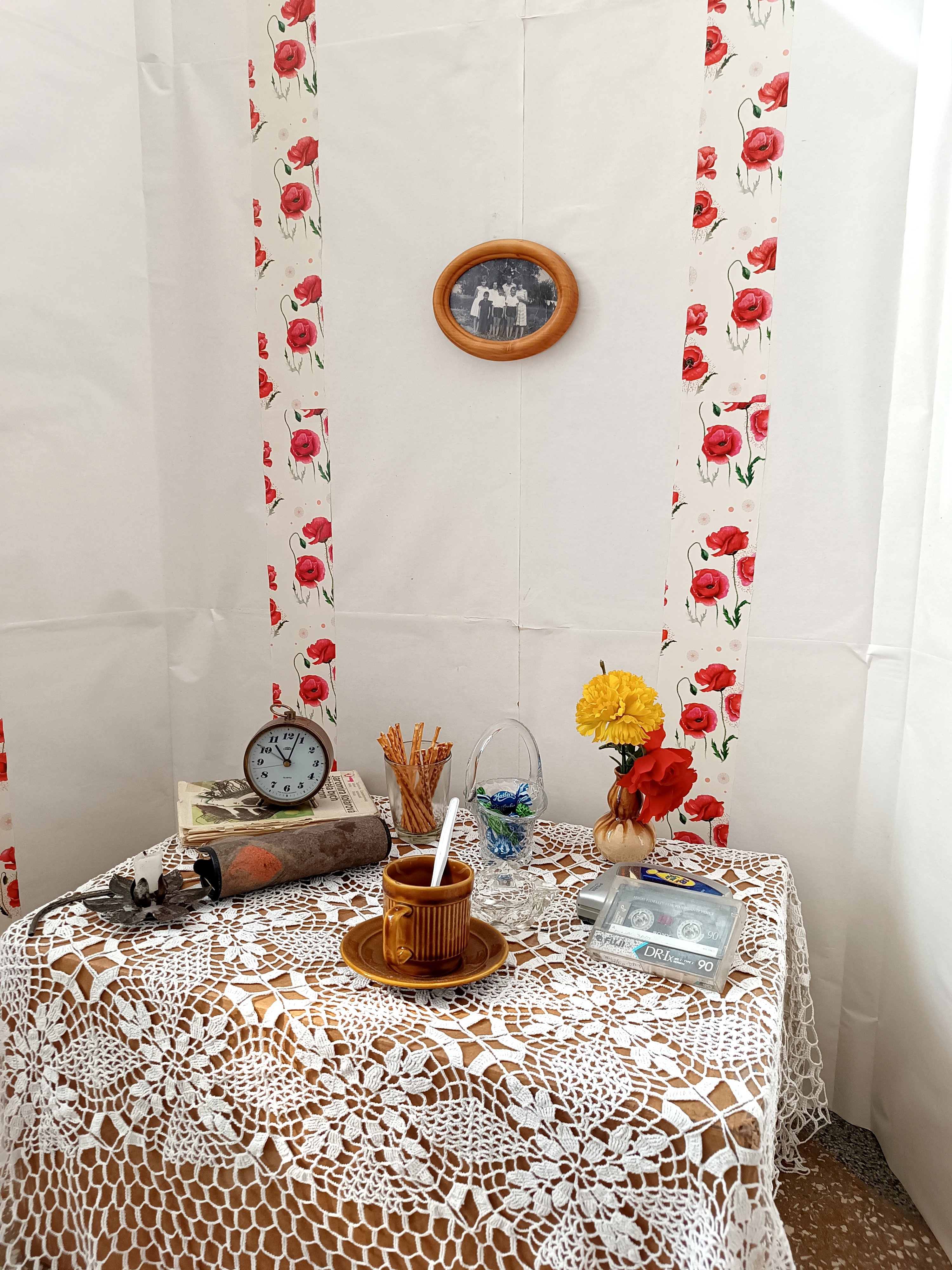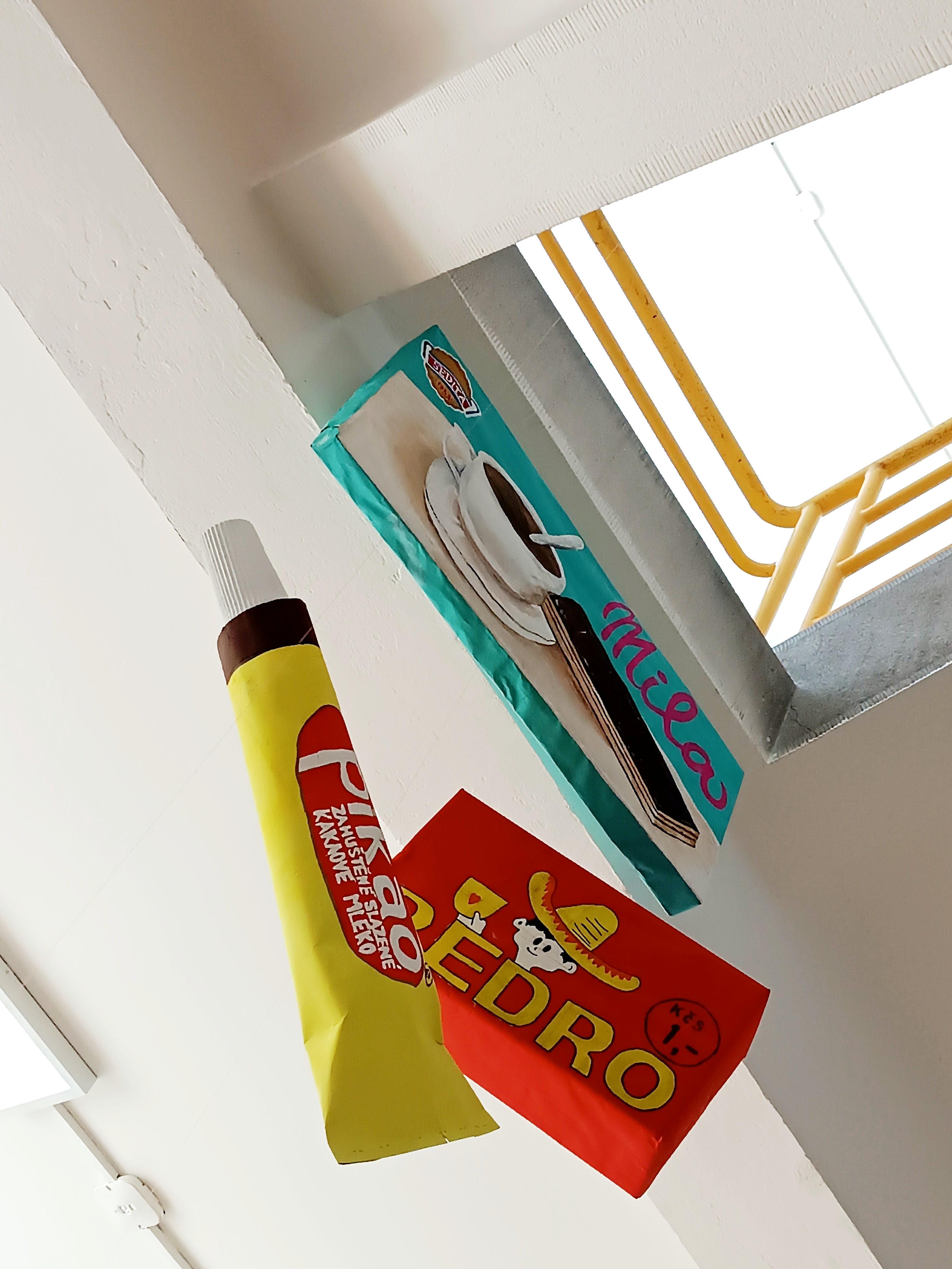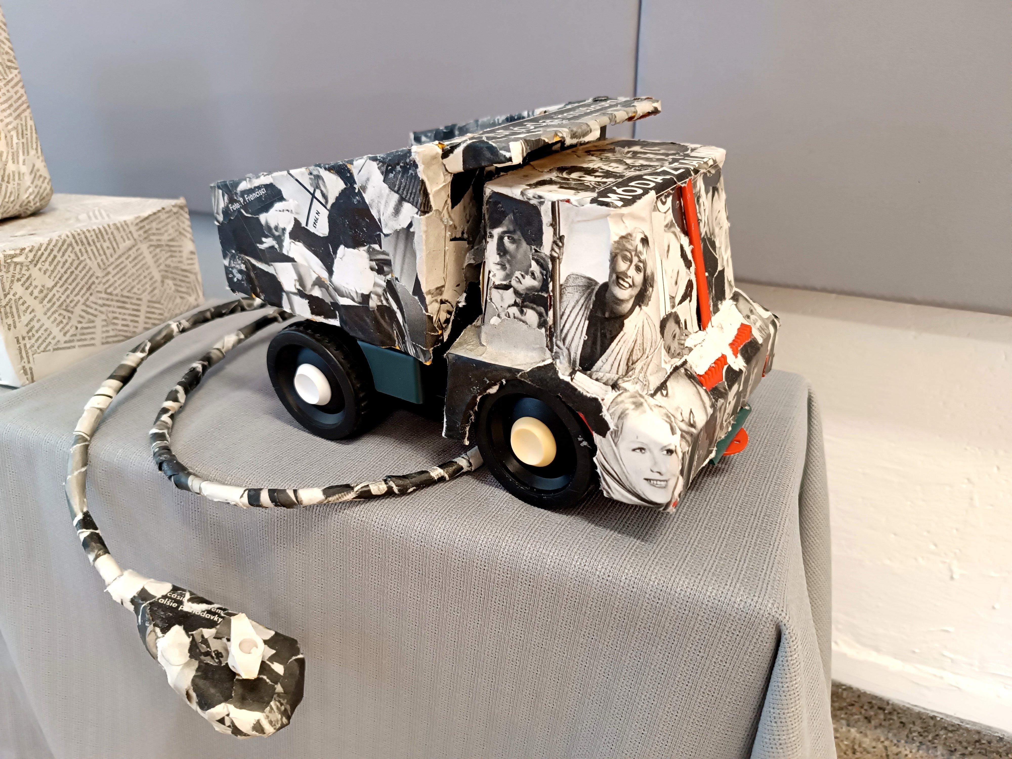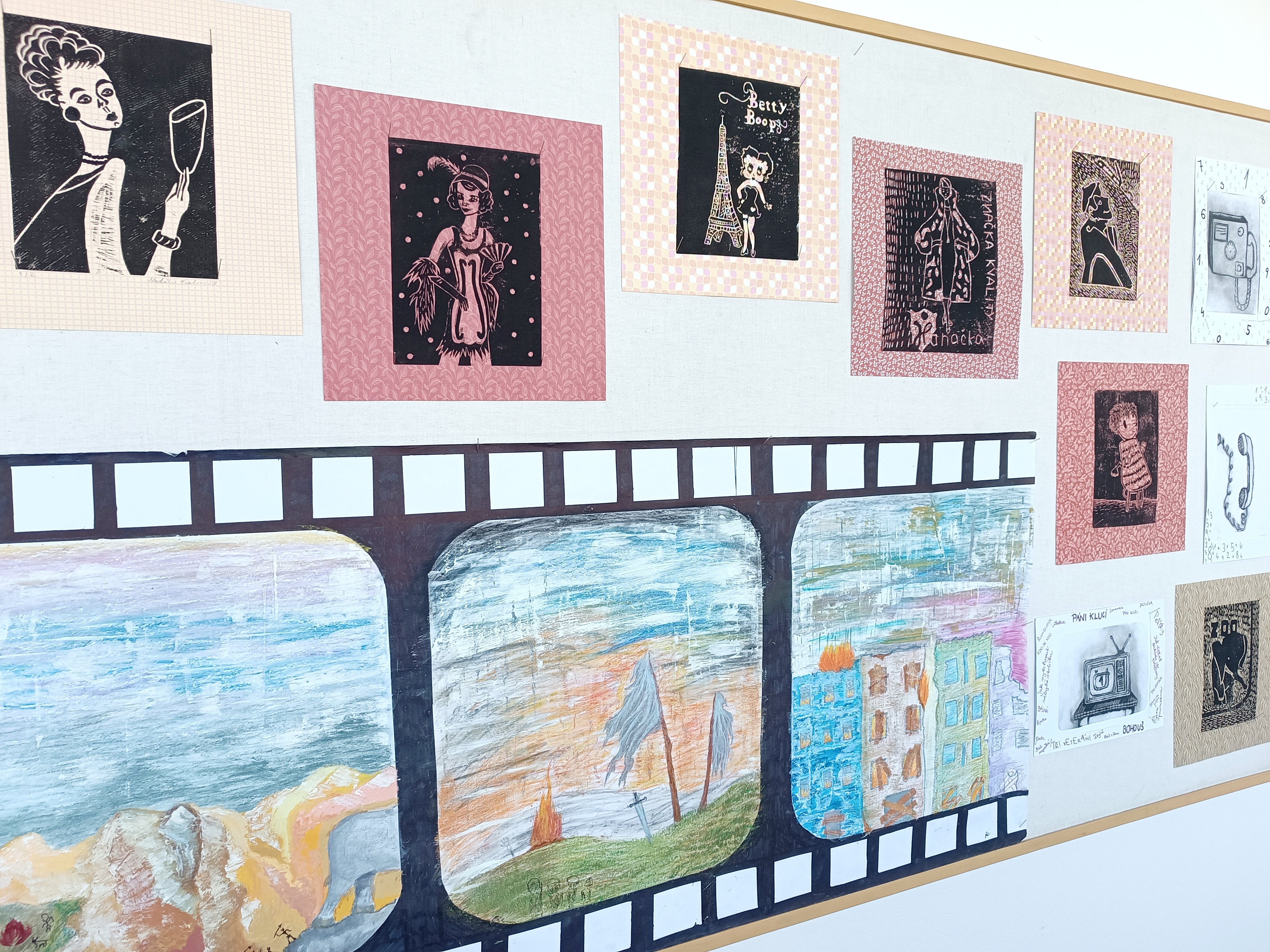 Na výstavě jsou tedy zastoupeny různé výtvarné techniky – od kresby a malby přes grafiku až po kombinované techniky i prostorové práce. Každé dílo nese osobitý rukopis svého autora a odráží nejen studijní zadání, ale také individuální pohled studentů na zvolené téma. Součástí výstavy jsou také tematické instalace, které návštěvníky přenášejí do atmosféry minulých let. K vidění je například stylizované retro hračkářství, cukrárna, dětský pokoj, kadeřnictví či krejčovský salon. Zajímavou částí expozice je také přehlídka starších technických zařízení, například telefonů, kazeťáků, hudebních nosičů a dalších předmětů, které dnes již patří spíše do historie každodenního života. Výjimečným objektem celé výstavy je kartonová telefonní budka, která patří k nepřehlédnutelným a originálním prvkům instalace.