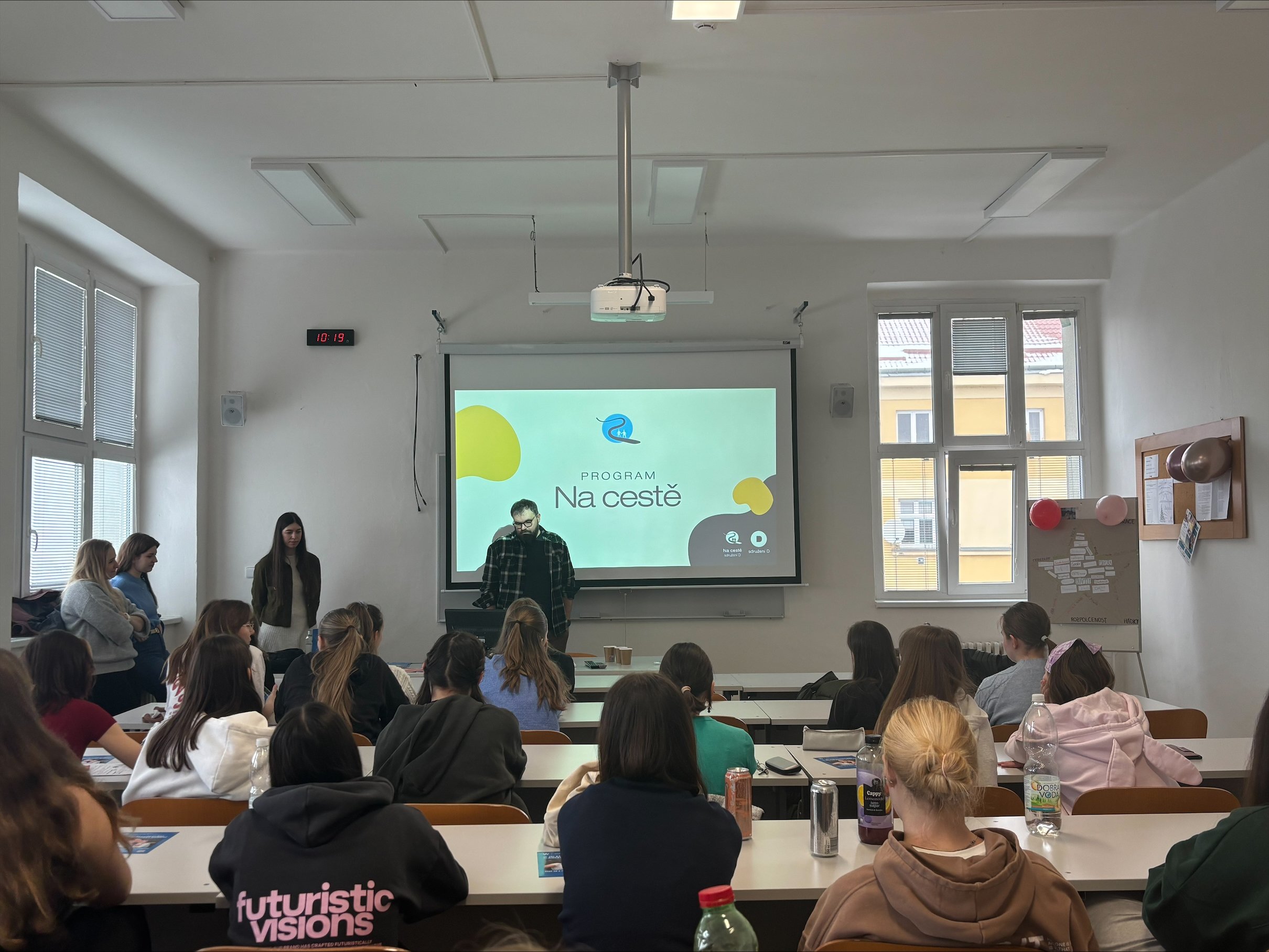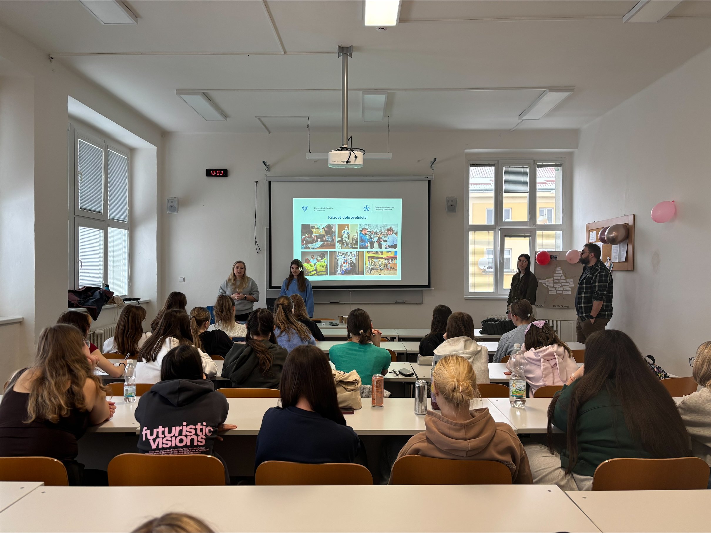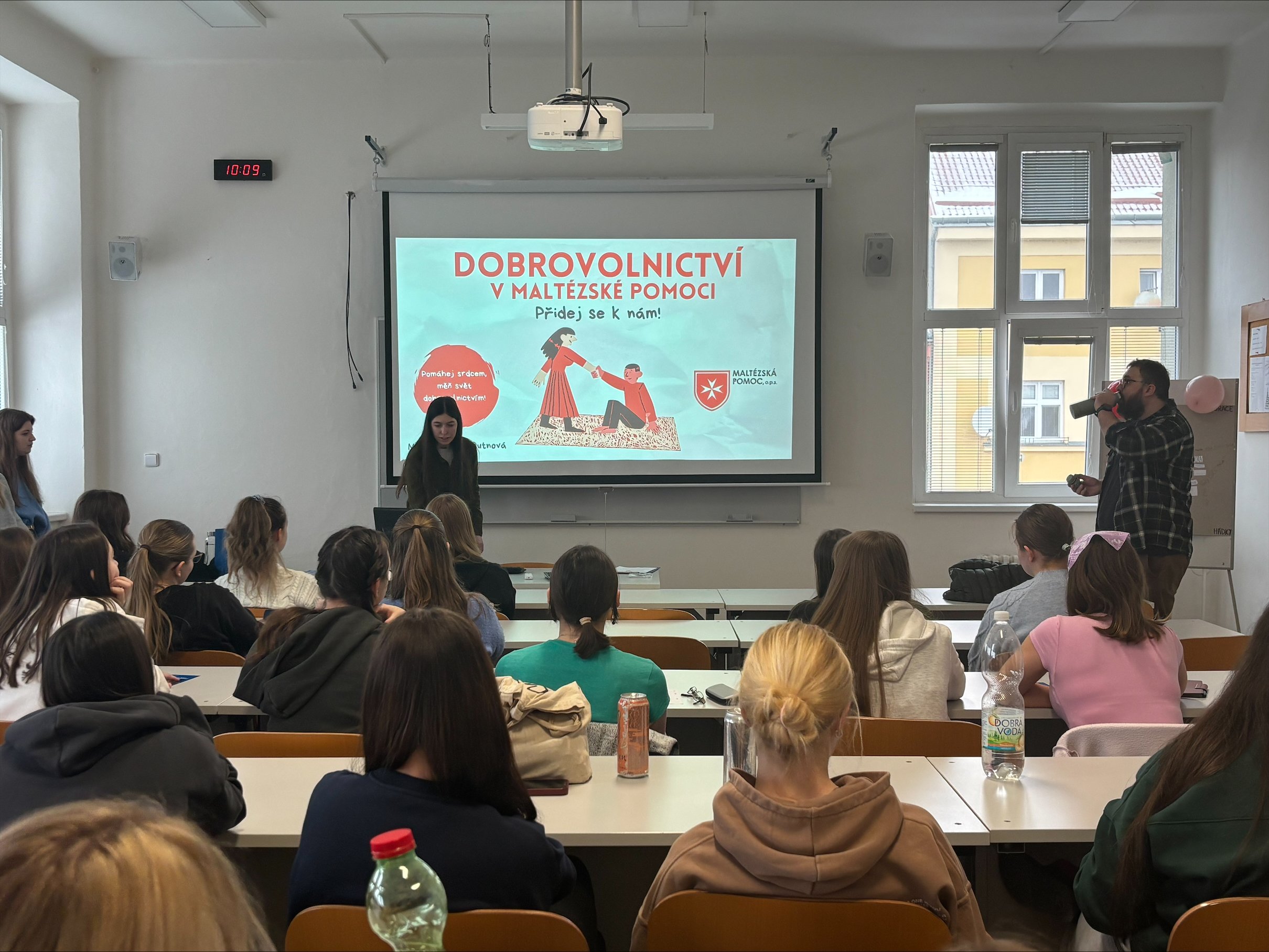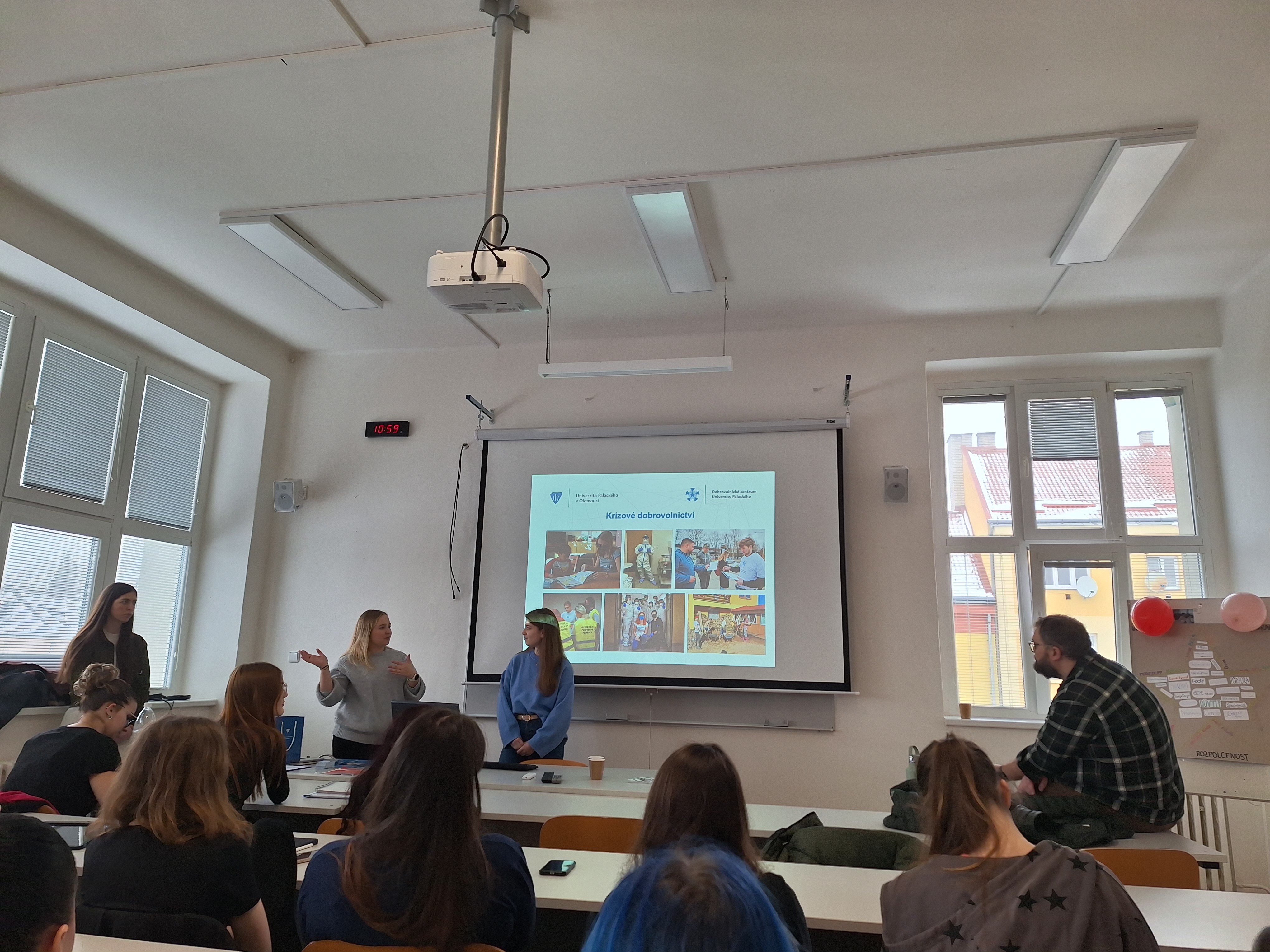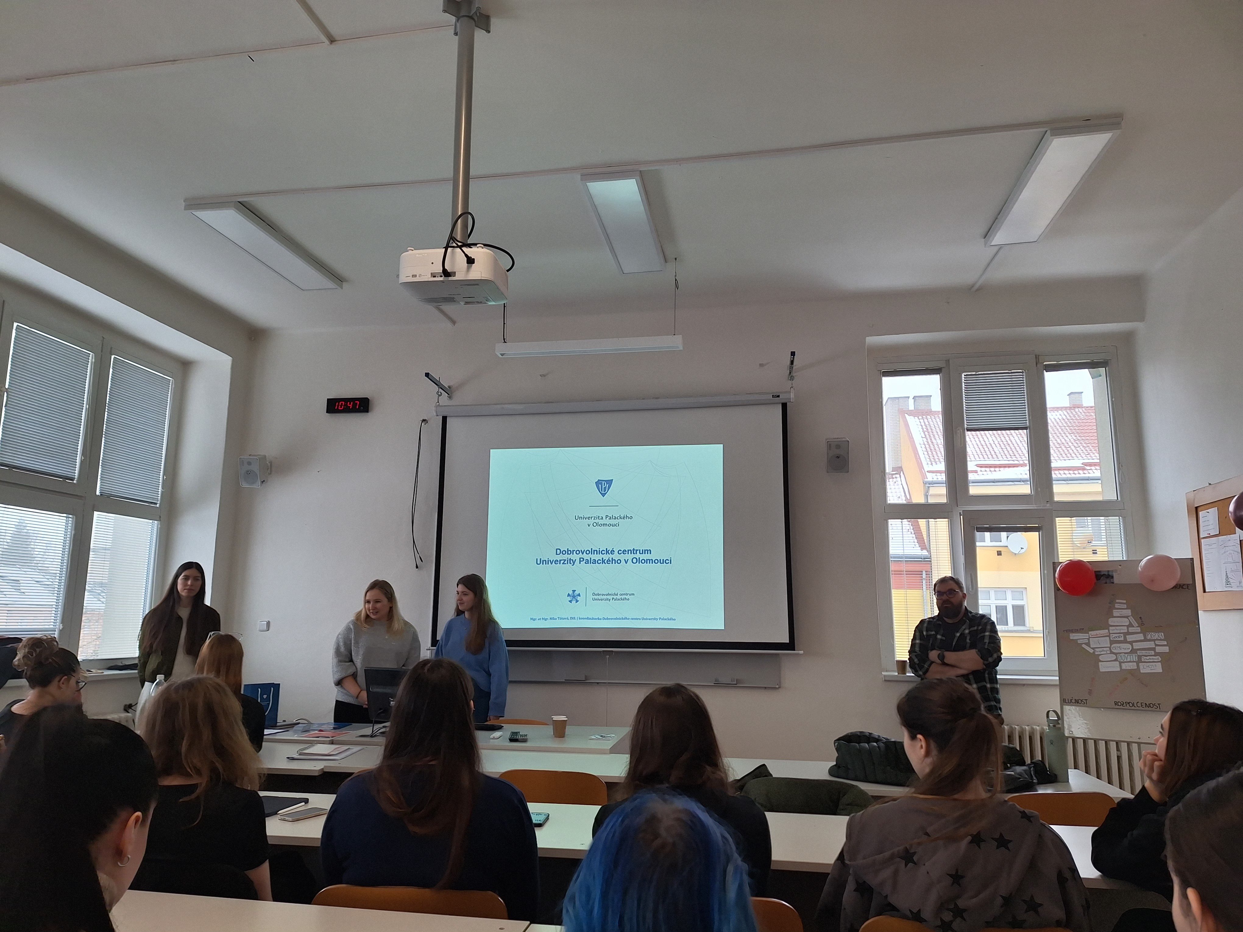 Studenti měli možnost vyslechnout si prezentace od tří různých organizací: Dobrovolnické centrum Univerzity Palackého v Olomouci, Maltézská pomoc a program Na cestě.