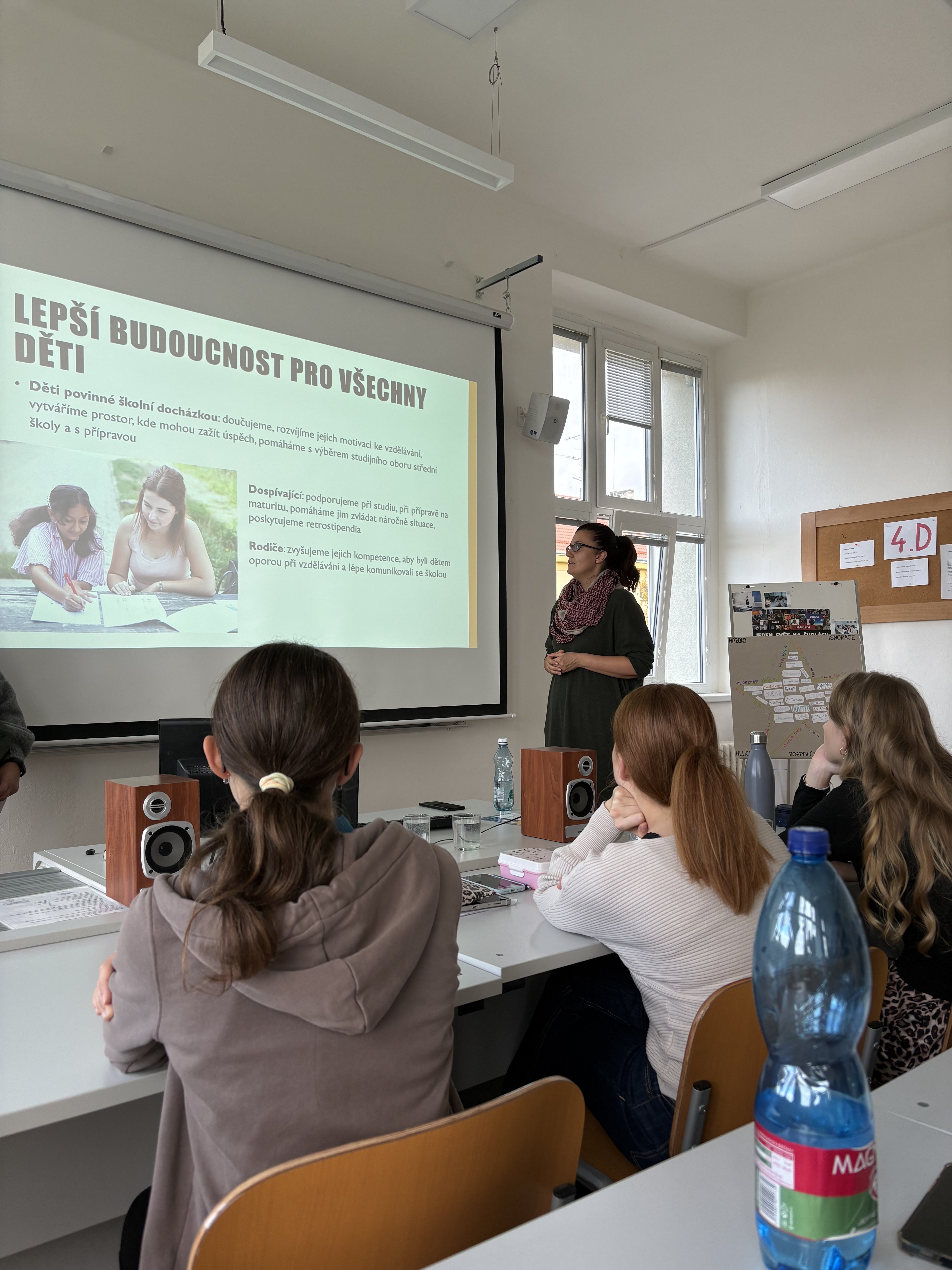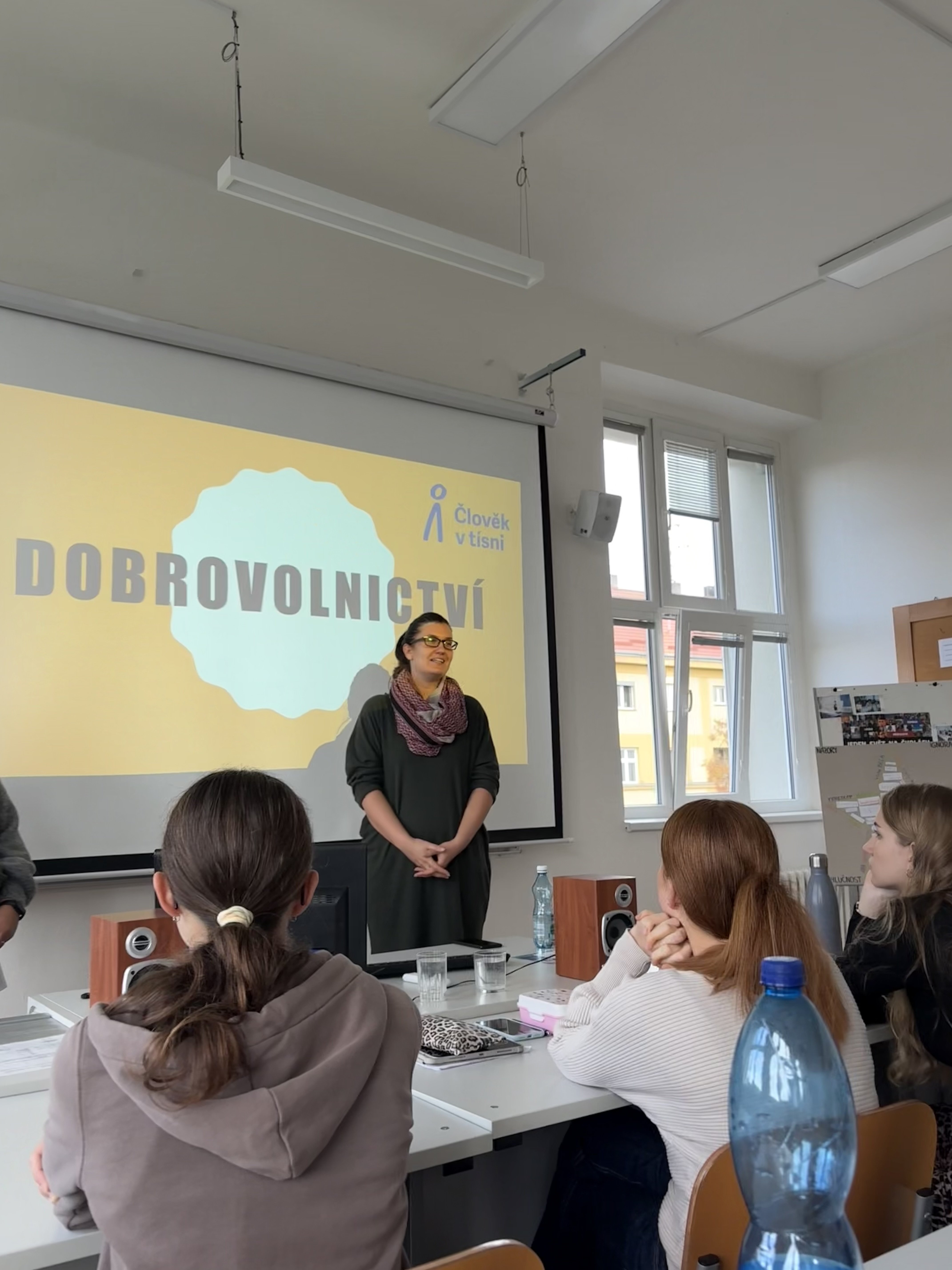 Zástupkyně organizace nám vysvětlila, kde všude Člověk v tísni působí, a představila také programy pro rodiny, které nemají dostatečné kompetence k učení svých dětí. Velká část činnosti se zaměřuje na doučování dětí z rodin, které si nemohou dovolit placenou pomoc nebo potřebují podporu při školní přípravě. Dobrovolníci dětem pomáhají s učením, vysvětlují látku a jsou zároveň oporou rodičům.