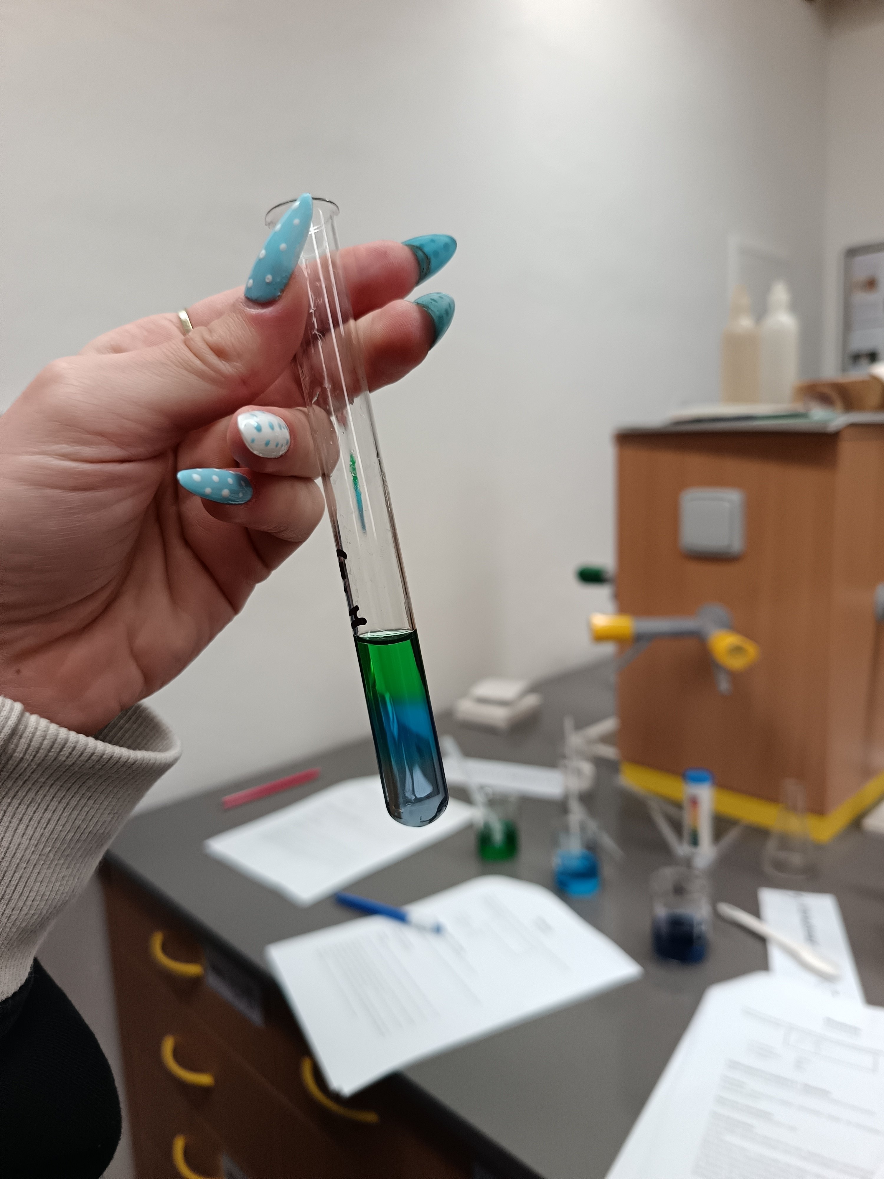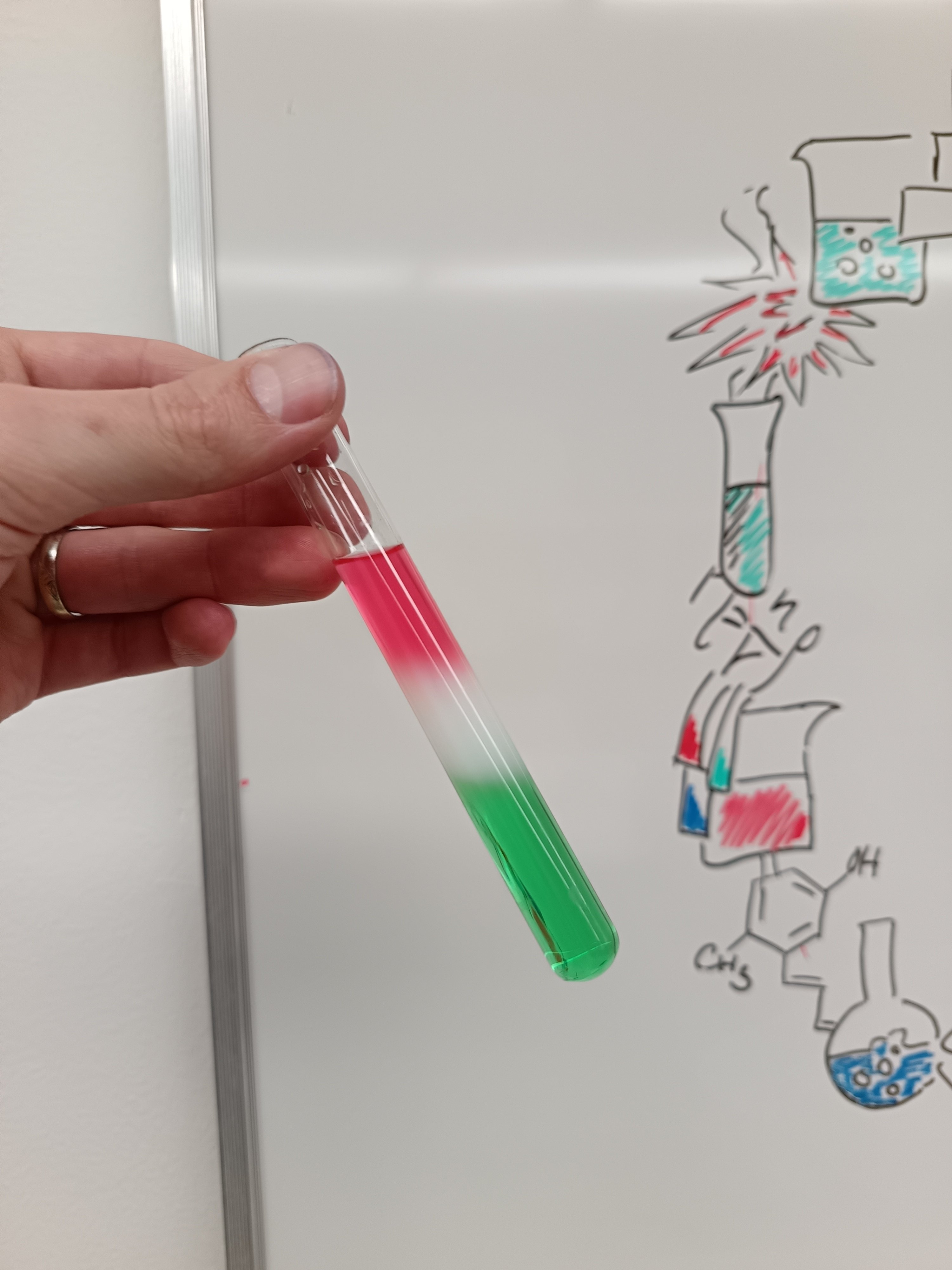 Druhým praktickým úkolem žáků bylo vyrobit vícebarevnou zkumavku na základě různých hustot roztoků o rozdílné koncentraci.