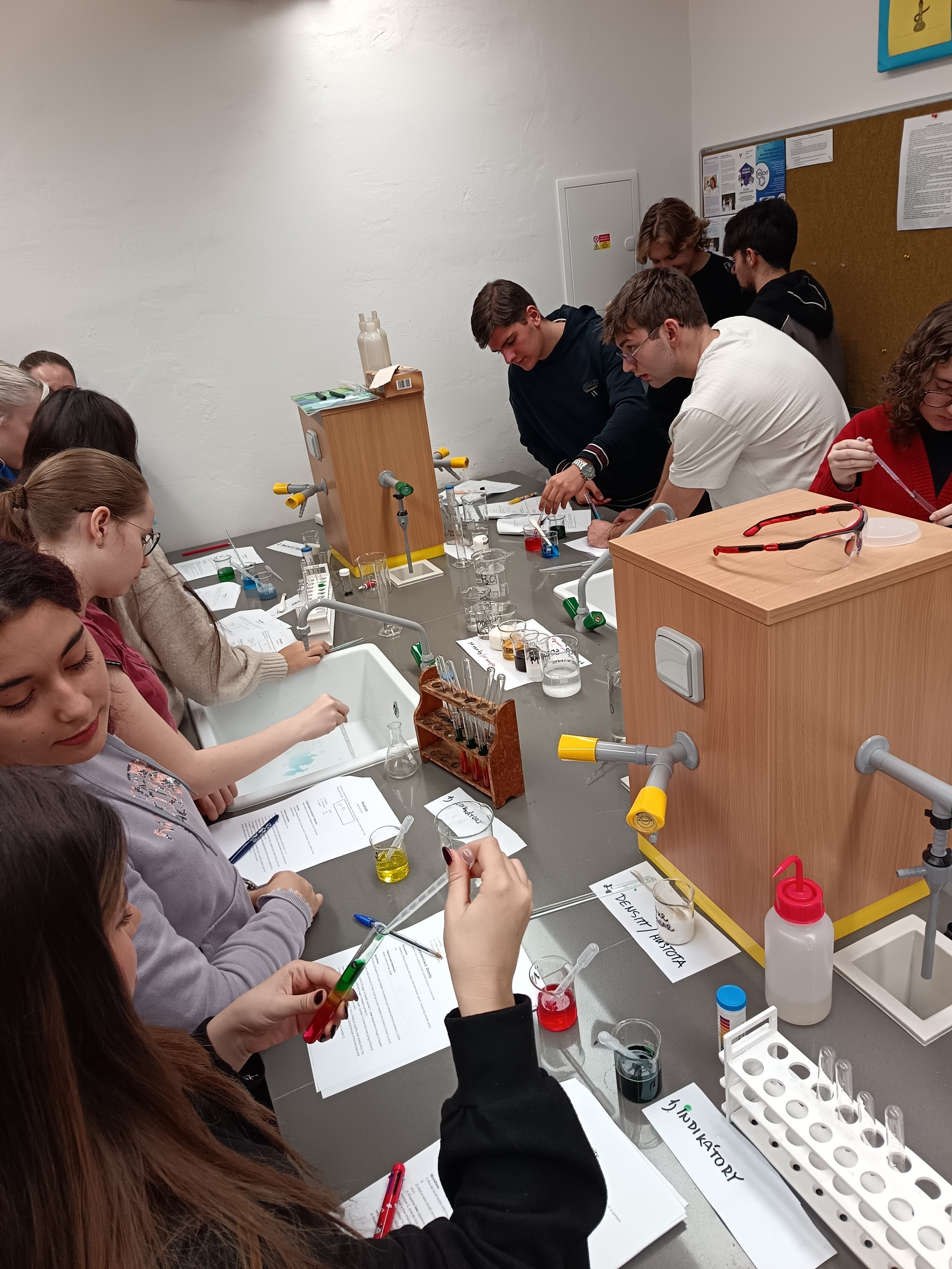 Druhou částí byla praktická část, která probíhala ve školní chemické laboratoři. V rámci praktické části si žáci zkusili "uvařit" vlastní acidobazický indikátor a pomocí něj zjišťovat pH různých látek z běžného života. Během celé práce zapisovali a zpracovávali výsledky svého bádání.