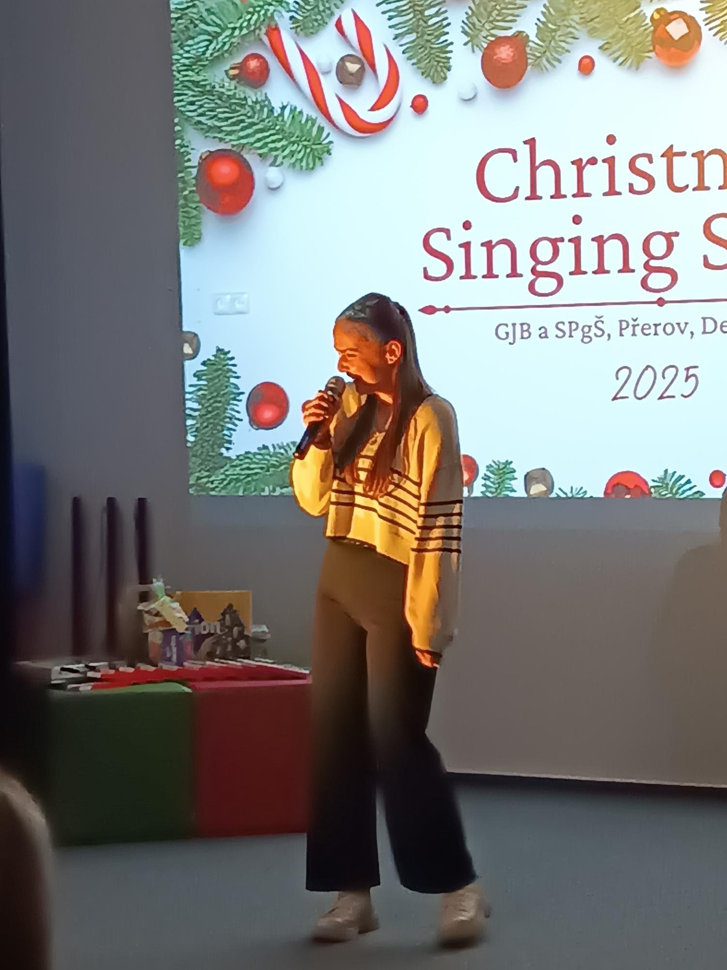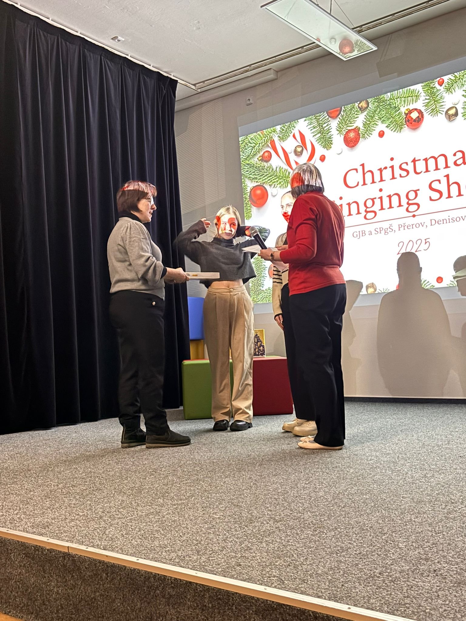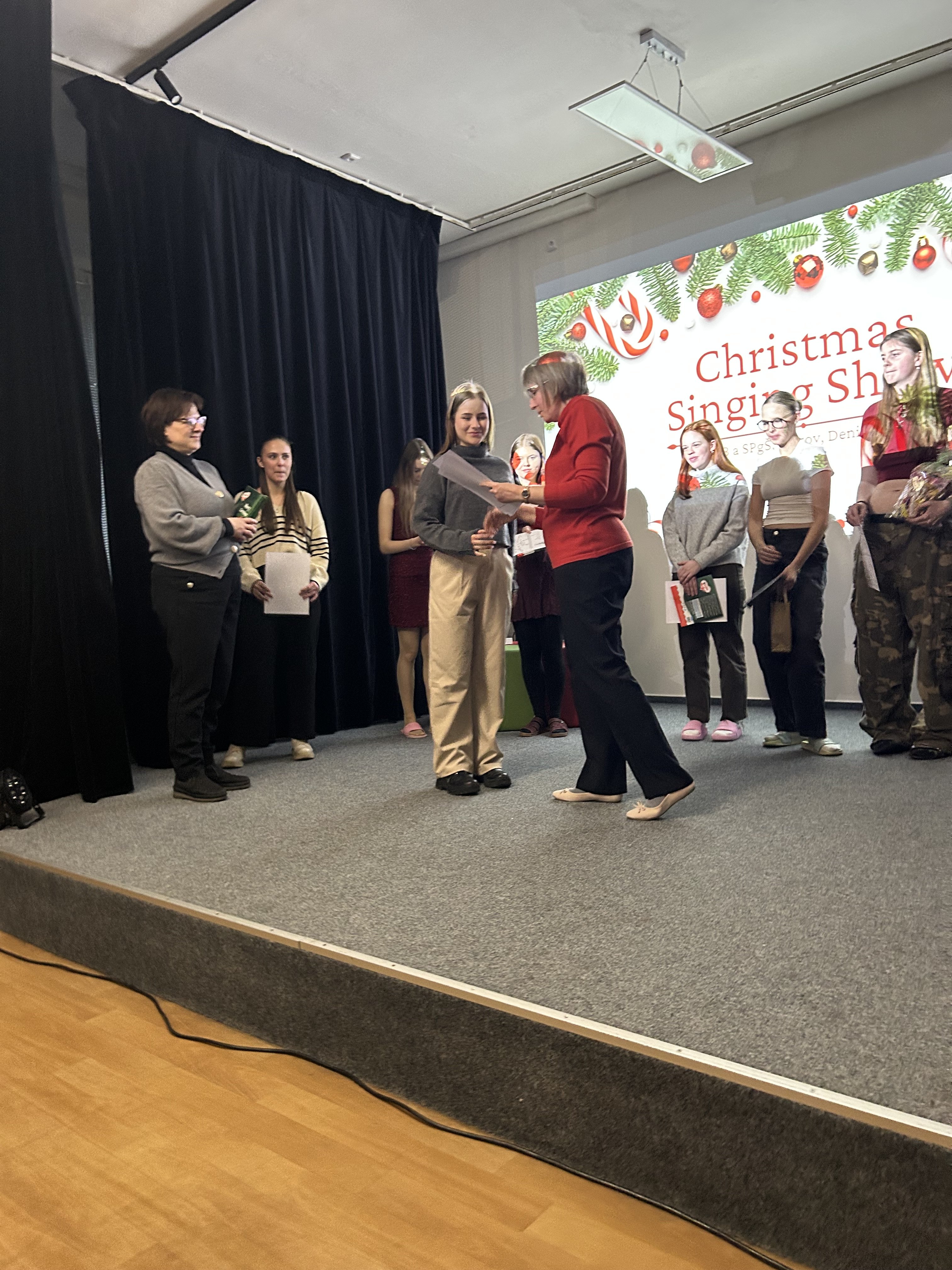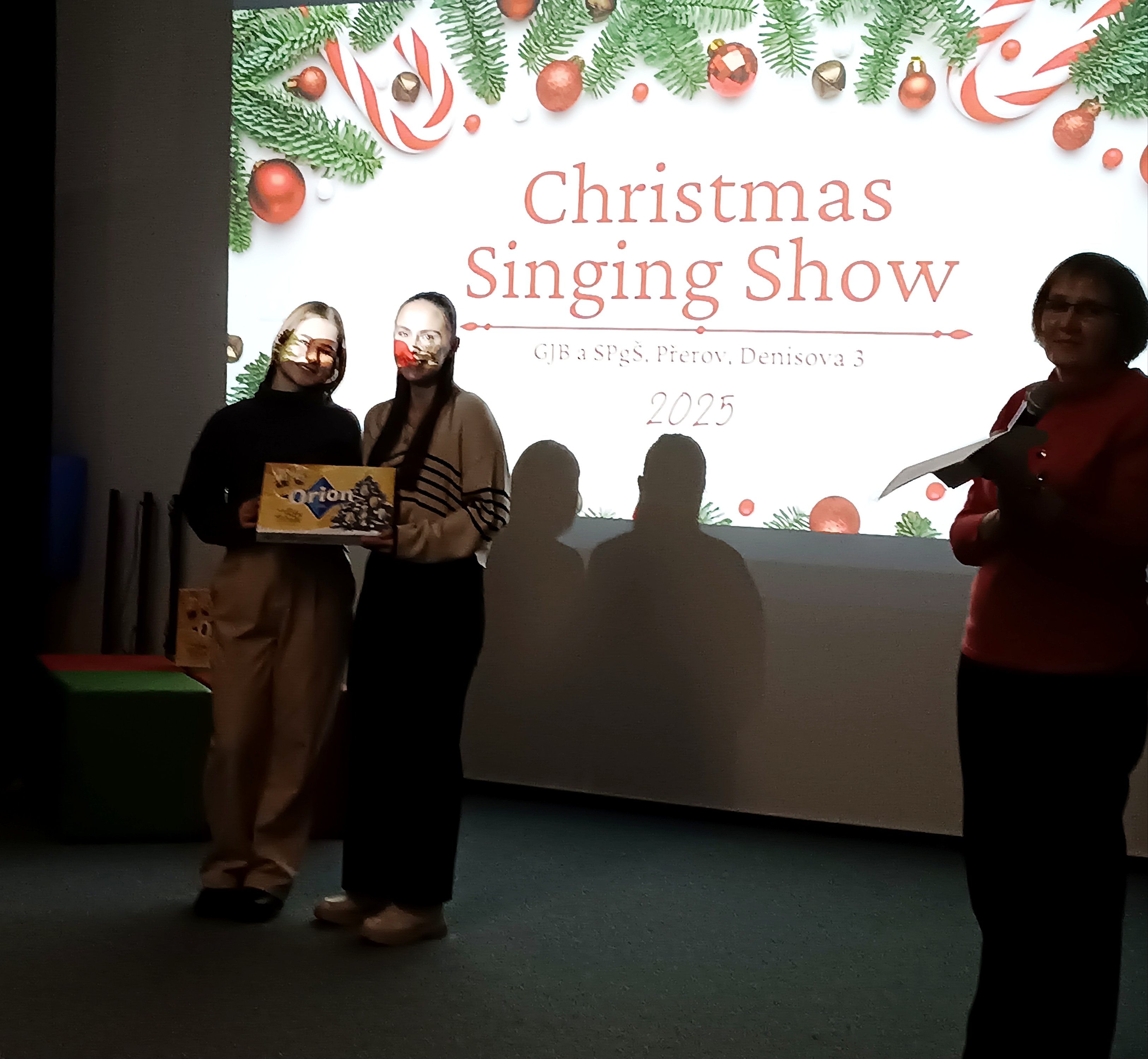 V úterý 2. 12. 2025 se uskutečnil již 3. ročník oblíbené pěvecké vánoční show. Show tradičně zahájila třída 4. D s třídní učitelkou Mgr. Evou Mikšovou, letos s písní Jingle Bell Rock. Kromě 4. D se letos do show přihlásilo 15 žákyň různých tříd Střední pedagogické školy. Vánoční atmosféru navodily hity jako např. All I Want for Christmas, Santa Baby, Last Christmas, nebo slavný Snowman. Programem nás provázeli výborní moderátoři Ondřej Berg a Natálie Filová, výkony hodnotila porota ve složení Mgr. Johana Mičková, Mgr. Pavlína Gregorová a Mgr. Karel Berka. O Cenu poroty se nakonec podělila dvě děvčata, Markéta Chytilová s písní Underneath The Tree a Vanesa Maléřová s písní The First Noel, obě z olomoucké třídy 2. DP. Cenu poroty za svou interpretaci písně O Holy Night získala Helena Budějovská ze třídy 2. CP.