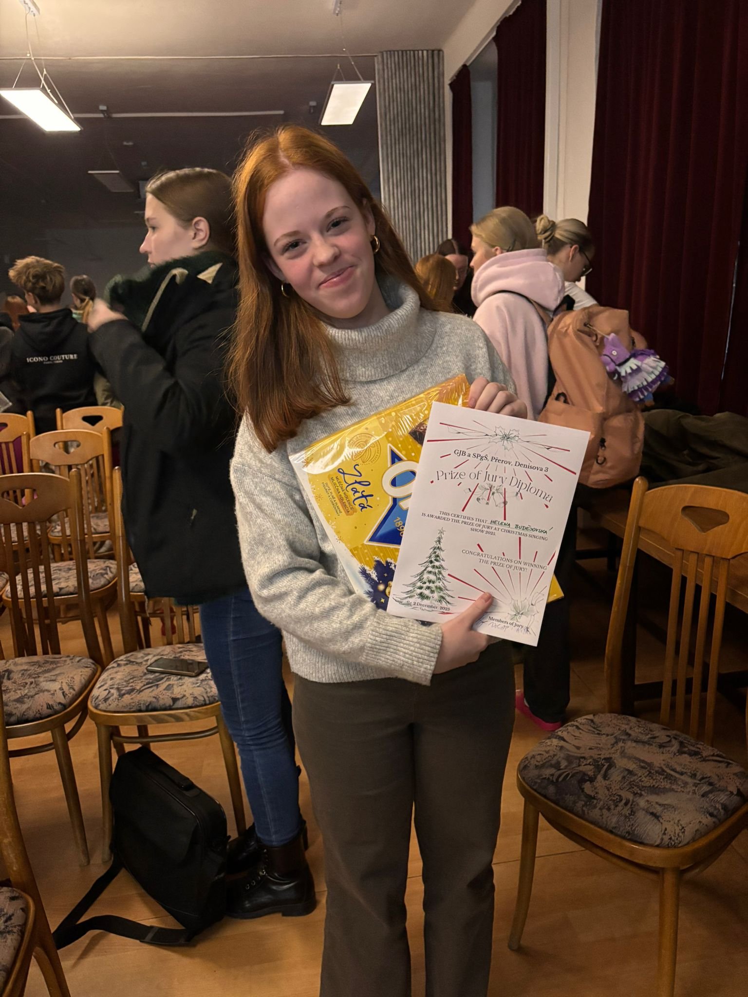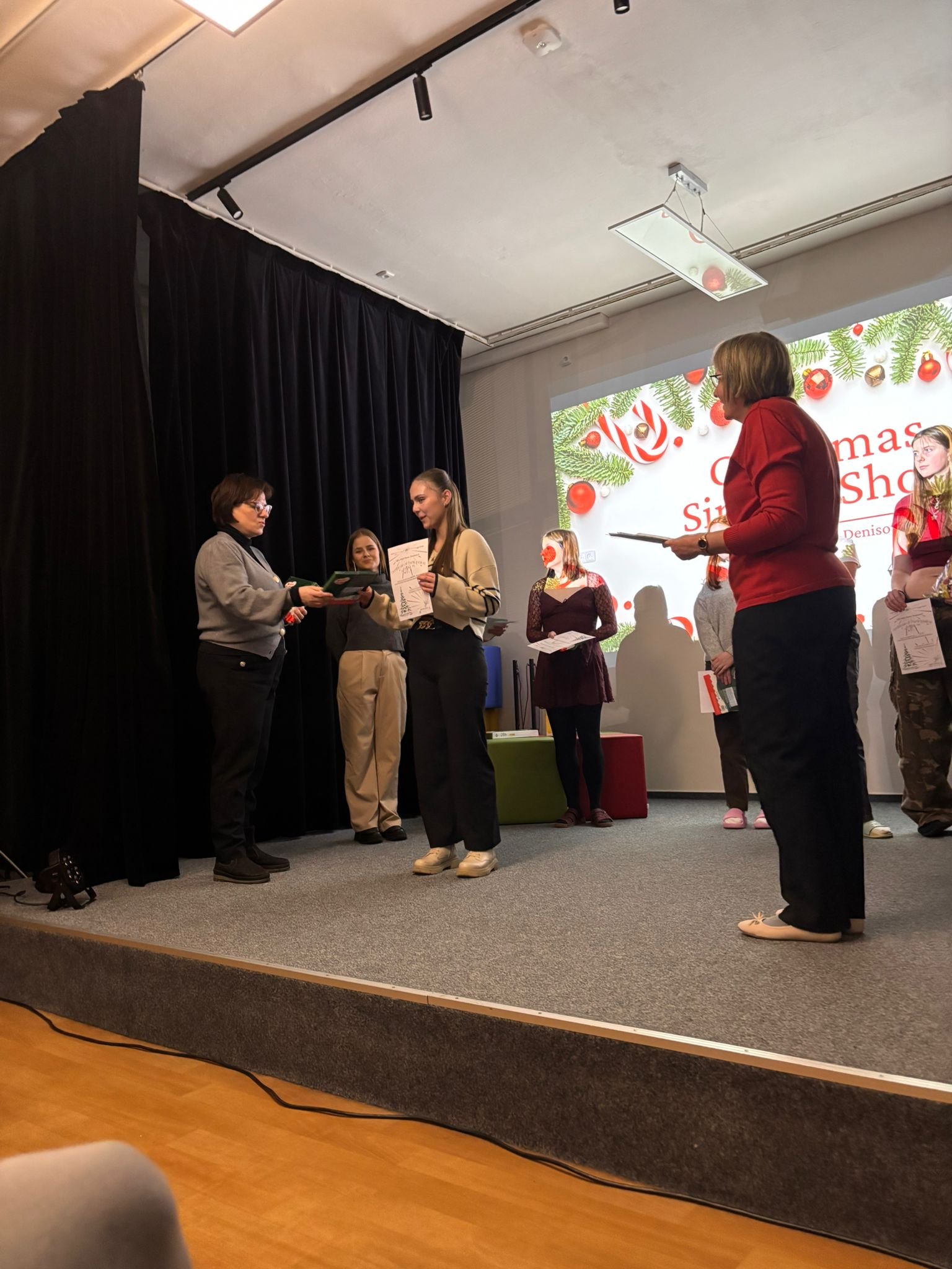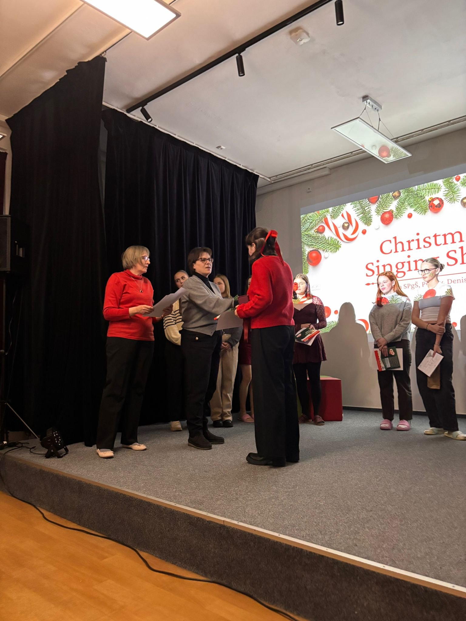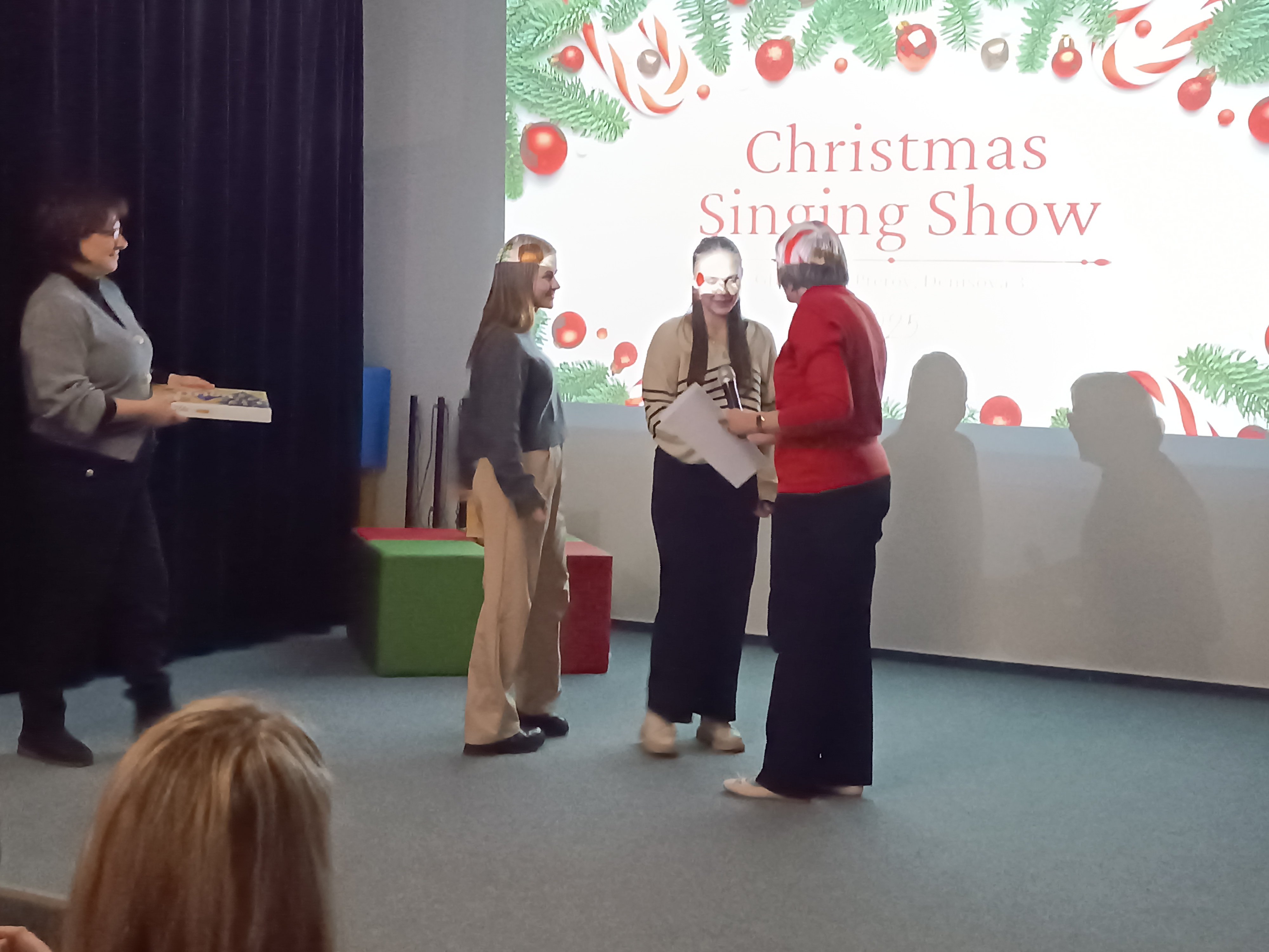 V úterý 2. 12. 2025 se uskutečnil již 3. ročník oblíbené pěvecké vánoční show. Show tradičně zahájila třída 4. D s třídní učitelkou Mgr. Evou Mikšovou, letos s písní Jingle Bell Rock. Kromě 4. D se letos do show přihlásilo 15 žákyň různých tříd Střední pedagogické školy. Vánoční atmosféru navodily hity jako např. All I Want for Christmas, Santa Baby, Last Christmas, nebo slavný Snowman. Programem nás provázeli výborní moderátoři Ondřej Berg a Natálie Filová, výkony hodnotila porota ve složení Mgr. Johana Mičková, Mgr. Pavlína Gregorová a Mgr. Karel Berka. O Cenu poroty se nakonec podělila dvě děvčata, Markéta Chytilová s písní Underneath The Tree a Vanesa Maléřová s písní The First Noel, obě z olomoucké třídy 2. DP. Cenu poroty za svou interpretaci písně O Holy Night získala Helena Budějovská ze třídy 2. CP.