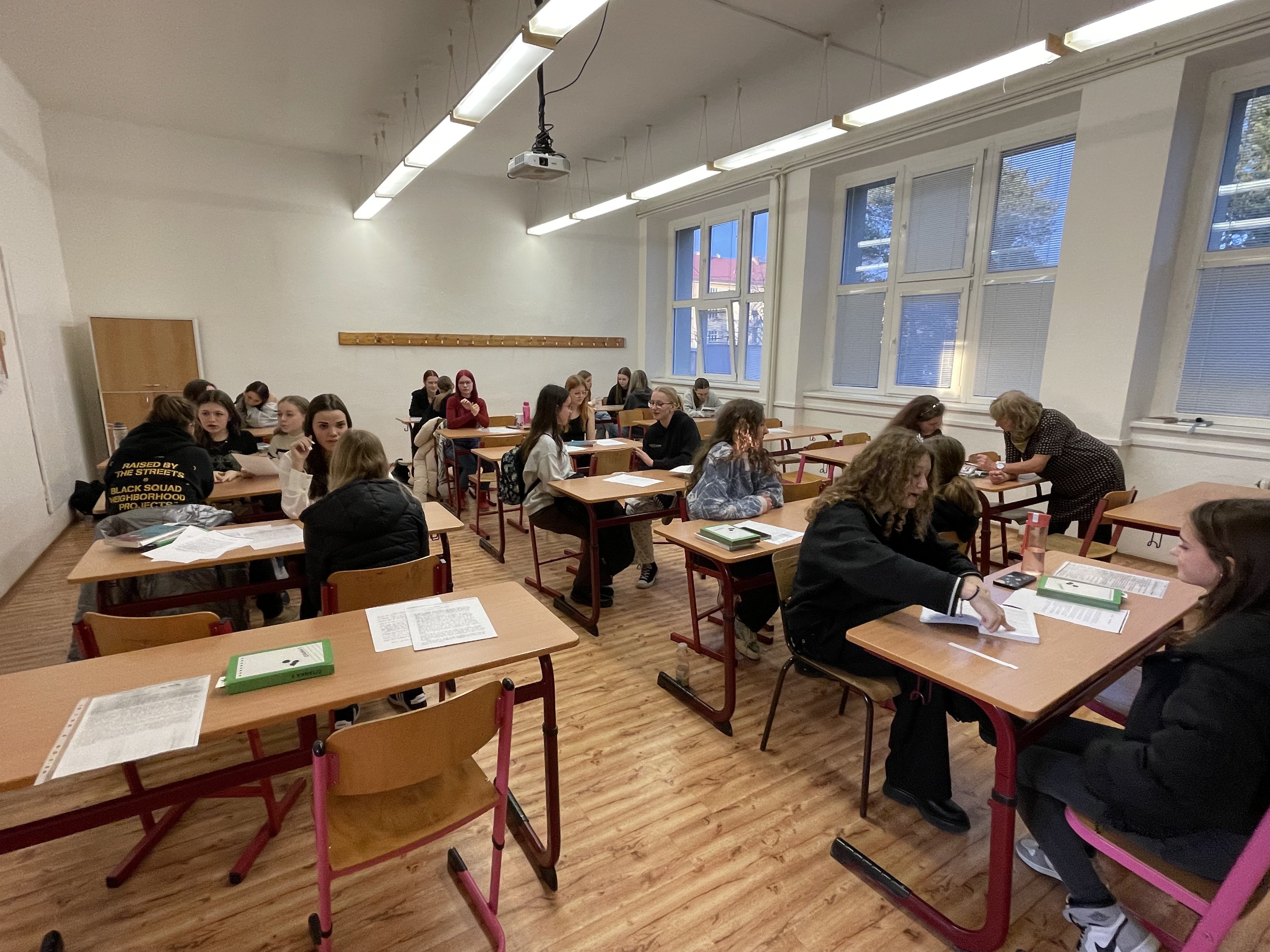 Obor Šestileté i Čtyřleté gymnázium – živé jazyky prezentovala zástupkyně ředitelky Mgr. Pavla Kadaníková. Na budově gymnázia si také mohli uchazeči o studium vyzkoušet testy k přijímacím zkouškám z českého jazyka a matematiky. Rodiče i žáci měli možnost pohrát si s roboty, virtuální realitou – vyzkoušet si 3D tisk, fyzikální i chemické pokusy.