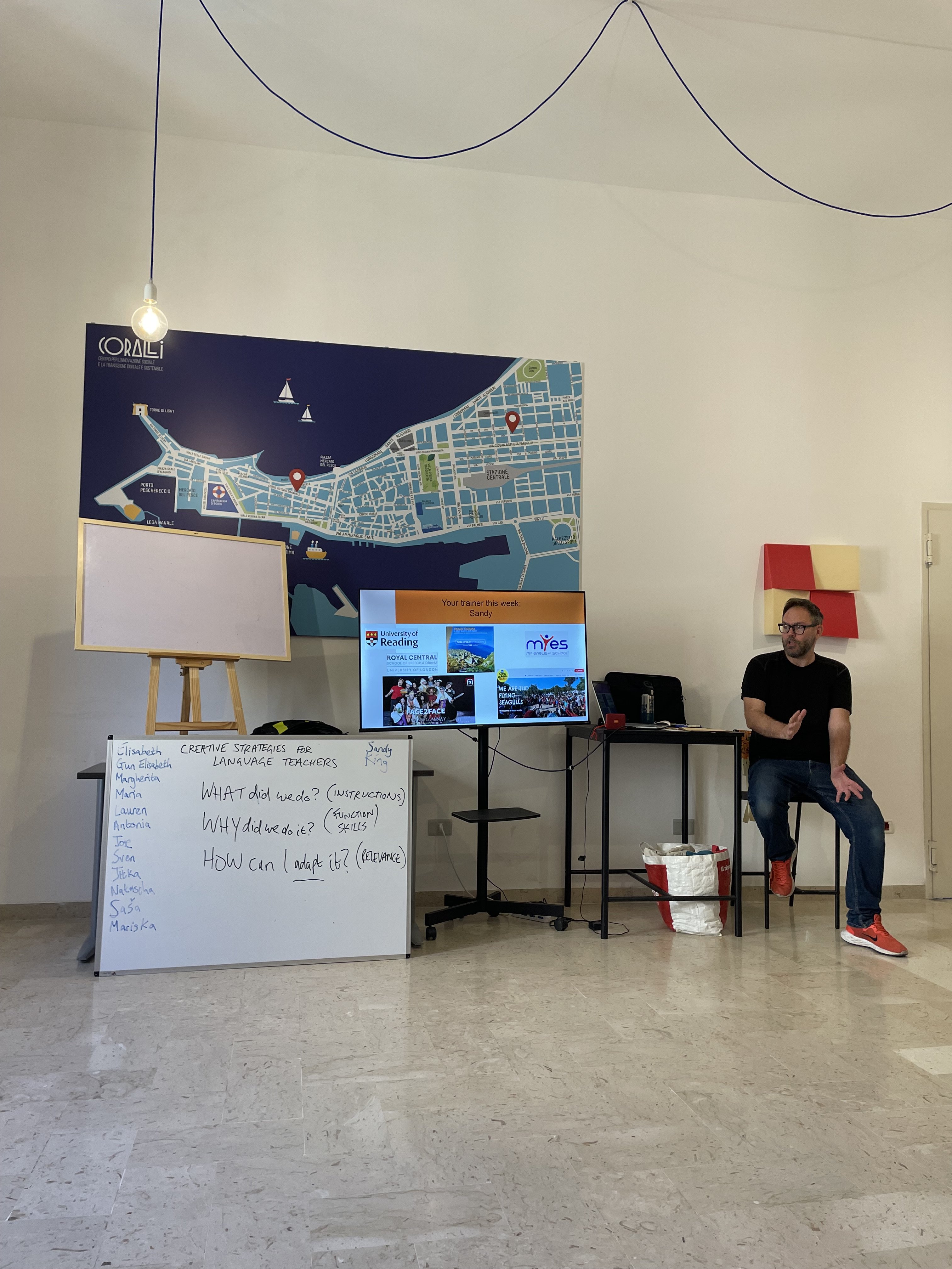 Posílám pozdrav z metodického kurzu pro učitele s názvem "Creative Strategies for Language Teachers". Kurz probíhá tento týden na Sicílii v historickém městečku Trapani a účastní se ho celkem 12 učitelů z různých zemí Evropy, např. Norska, Irska, Německa nebo Slovinska. Výuka probíhá pod vedením anglického lektora Sandy Kinga a je zaměřená na kreativní metody ve výuce.