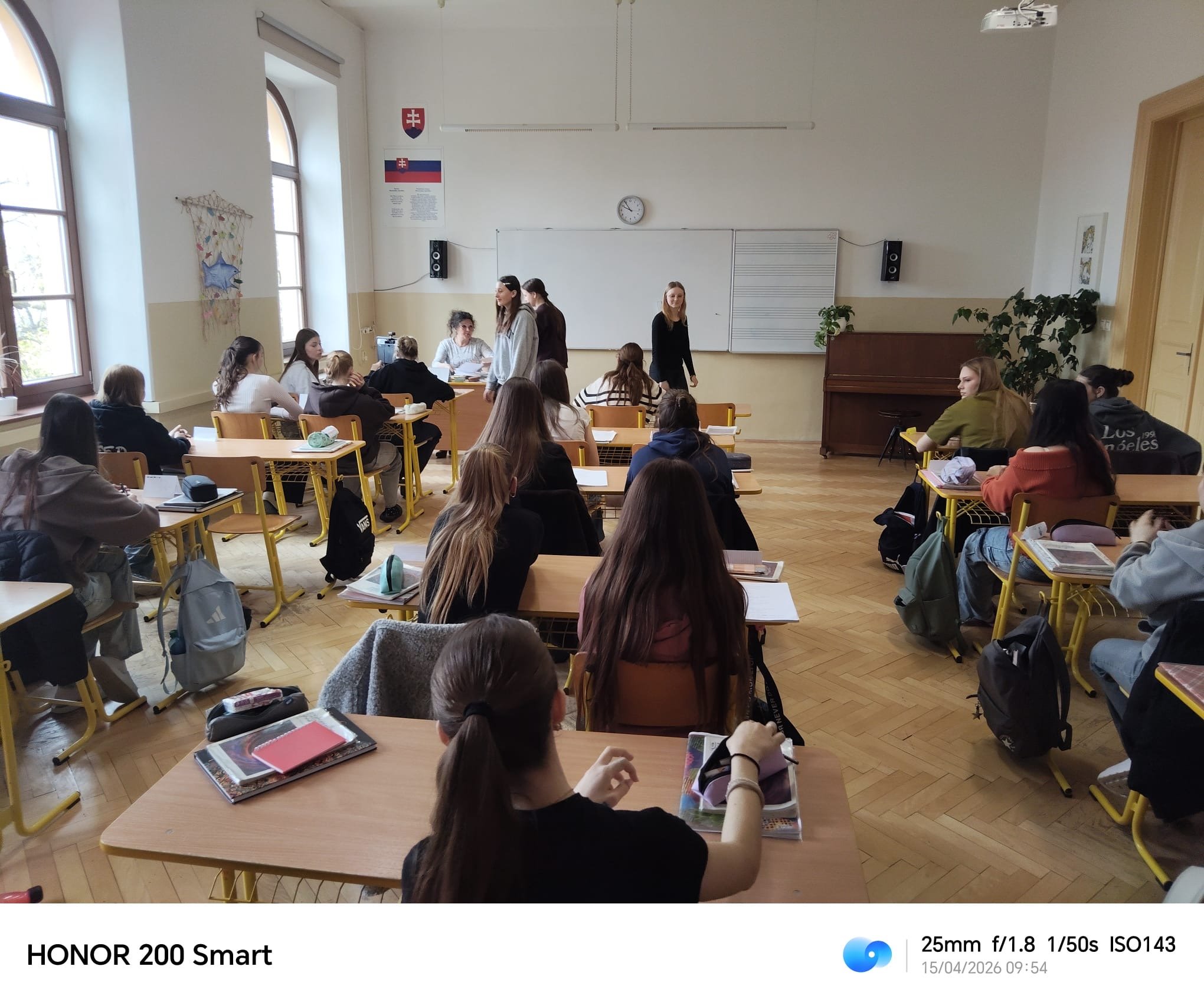 Ve dnech 14.–17. 4. 2026 se dr. Strnadová a Mgr. Turečková zúčastnily stínování výuky na Střední pedagogické škole v Prešově na Slovensku, které proběhlo v rámci programu Erasmus+. Během pobytu se dr. Strnadová zaměřila na stínování v hodinách dějepisu a slovenského jazyka. Měla možnost sledovat různé vyučovací metody, práci s žáky i způsob vedení hodin. Zaujala ji zejména aktivní práce studentů v hodinách, důraz na diskusi a zapojování jejich vlastních názorů, především v dějepise. V hodinách slovenského jazyka byl patrný systematický rozvoj jazykových kompetencí a práce s textem. Mgr. Turečková se věnovala stínování výuky pedagogiky a psychologie, kde ocenila především propojení teoretických poznatků s praktickými situacemi a důraz na rozvoj profesních kompetencí budoucích pedagogů. Celkově bylo pro obě vyučující stínování velmi přínosné. Získaly nové podněty do výuky, inspiraci pro aktivizující metody i možnost porovnání vzdělávacích přístupů mezi oběma školami. Velkým benefitem pro ně byla také možnost sdílení zkušeností s kolegy ze zahraničí a navázání profesních kontaktů.