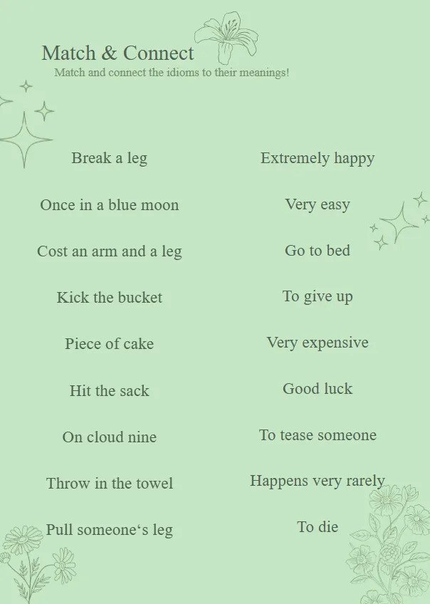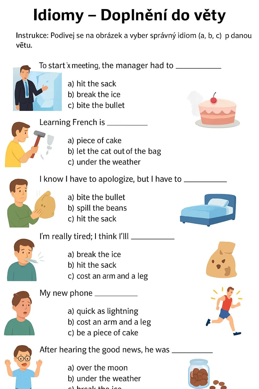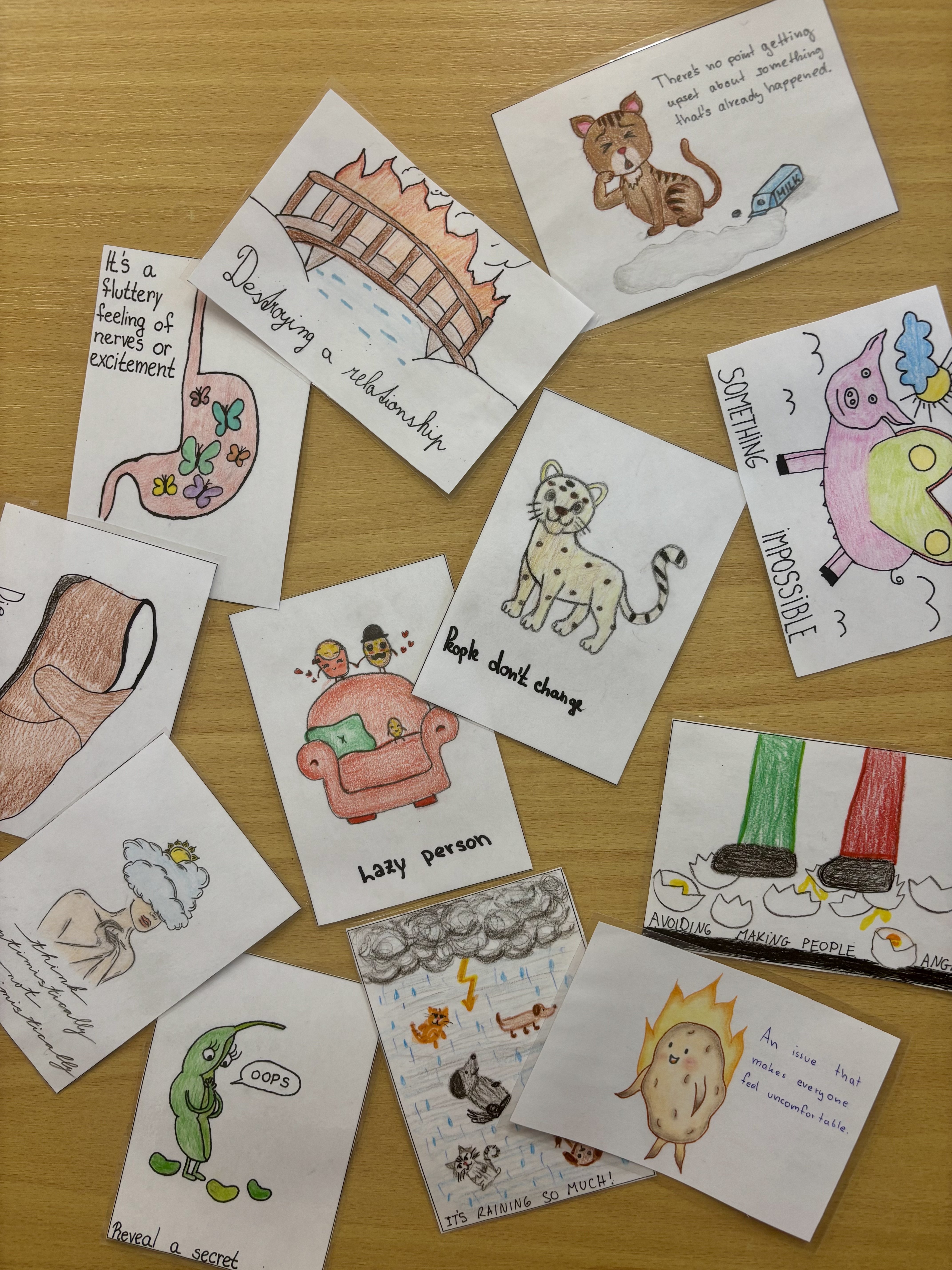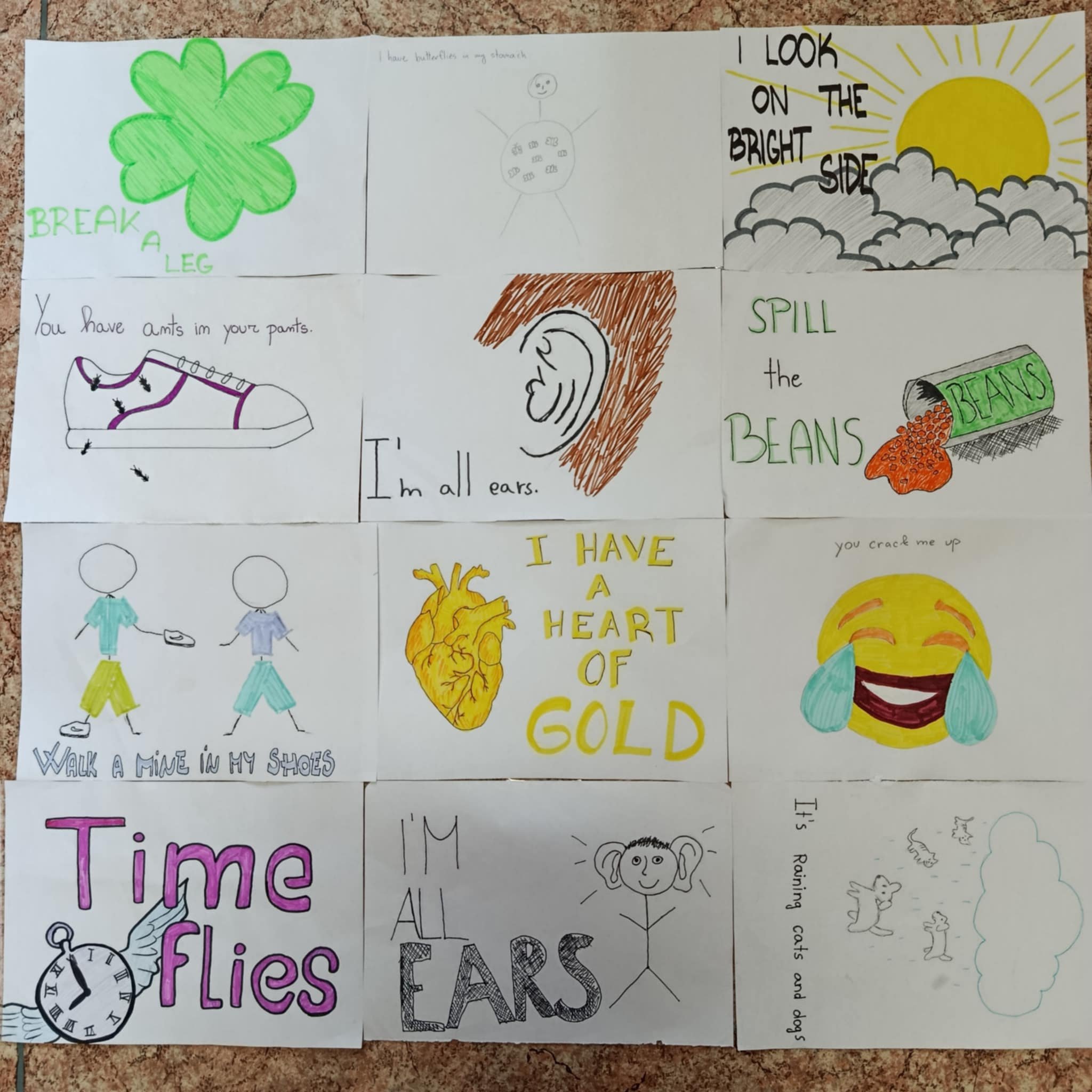 Žáci byli velmi kreativní, za použití moderních technologií vytvářeli příběhy s idiomy, prezentace, krátká videa, kvízy. Dále vznikaly nejrůznější aktivity v papírové podobě, které můžete nacházet různě po škole. Celkově si žáci rozšířili slovní zásobu na všech jazykových úrovní a podpořili komunikativní dovednosti zábavnou formou.