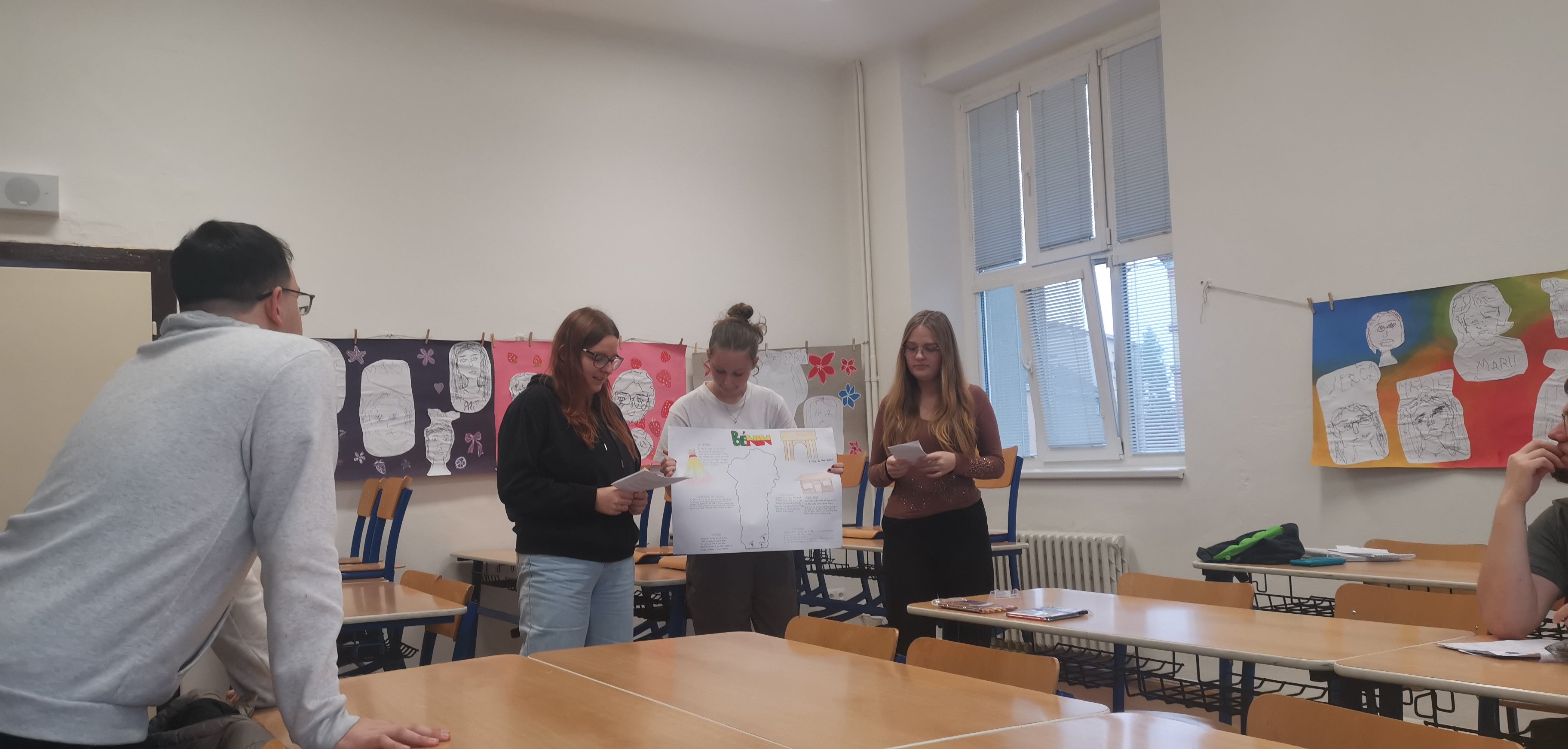Studenti pracovali s autentickými texty, mapami, obrázky i videem, tvořili vlastní plakáty a na závěr své poznatky prezentovali ostatním a seznámili se s rodilým mluvčím z Beninu.