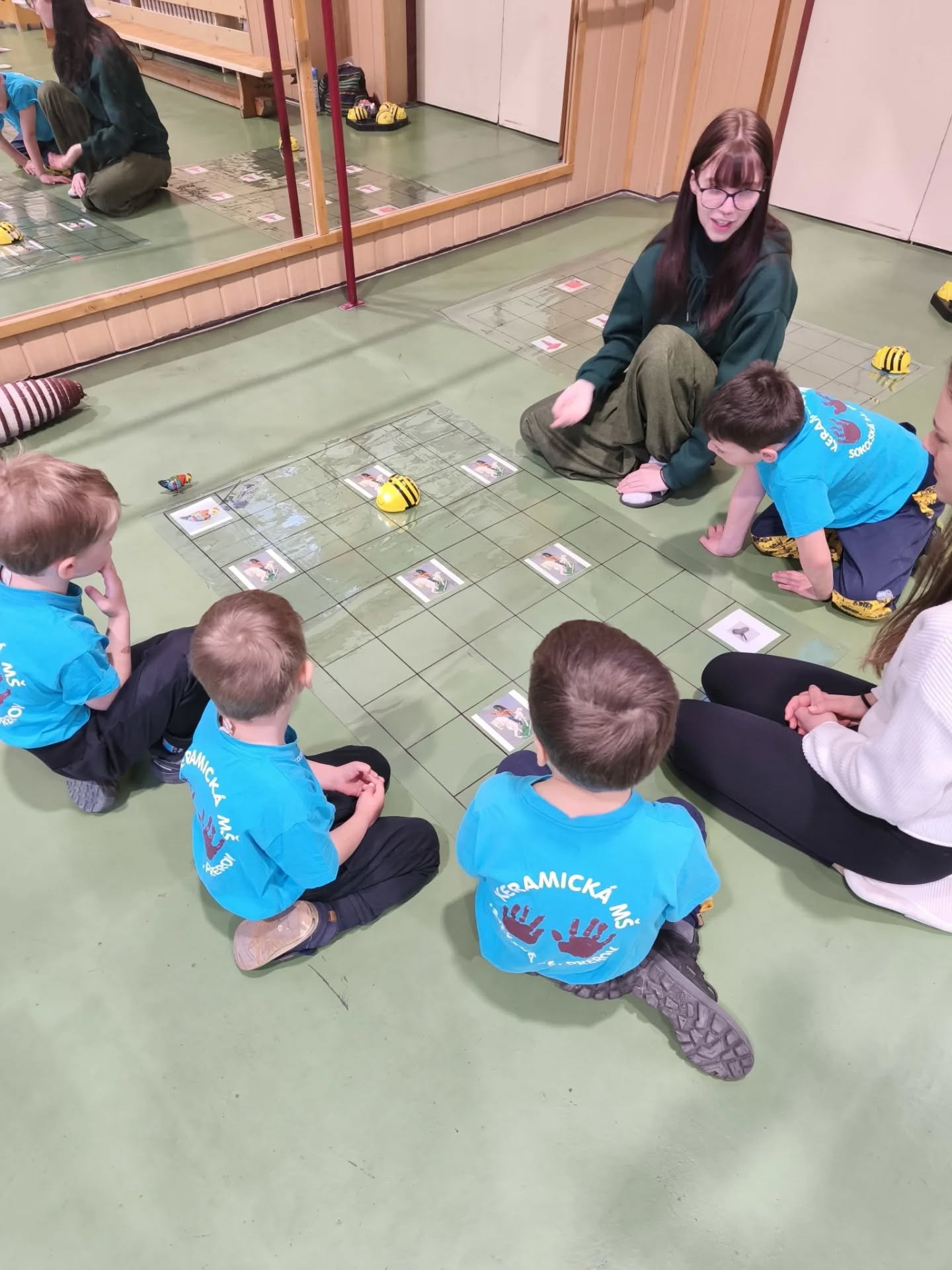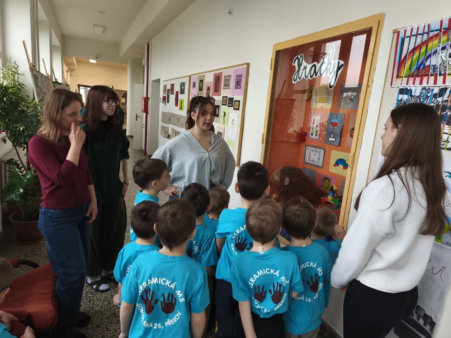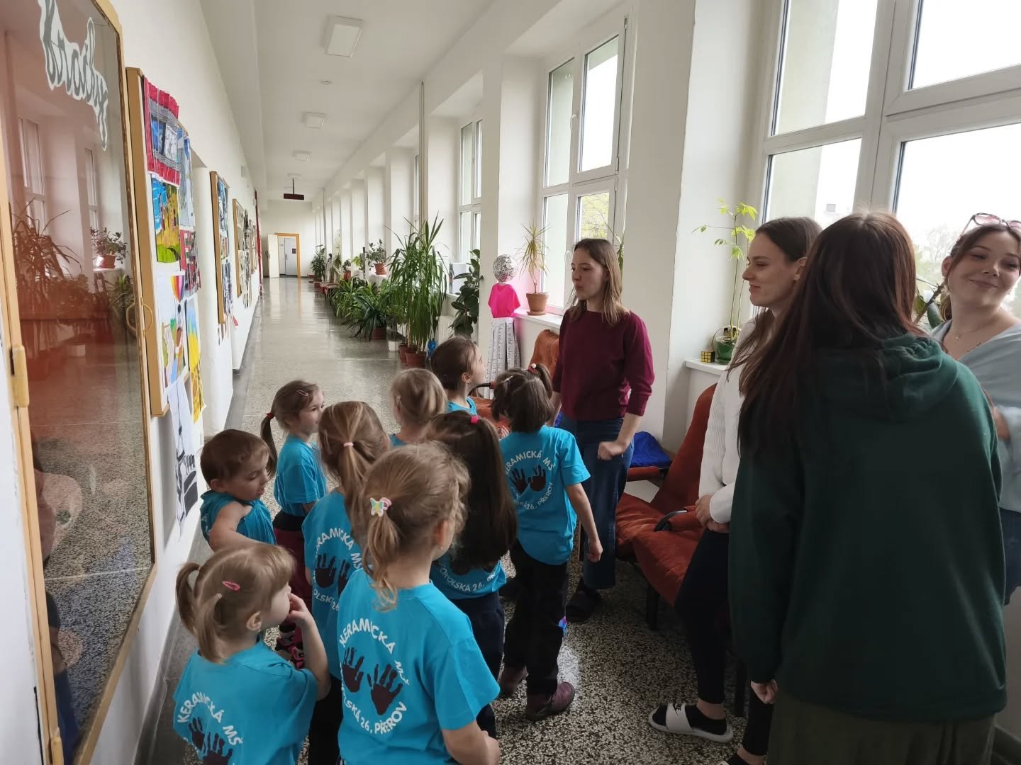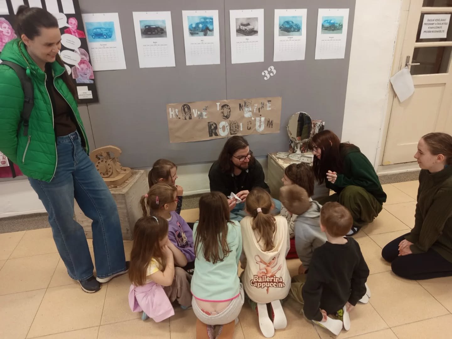 Velký úspěch měl i „kelímkový telefon“, díky kterému si děti zkusily netradiční formu komunikace. Propojení minulosti se současností pak přineslo seznámení s moderními vzdělávacími pomůckami, jako je BeeBot nebo autorská hra vytvořená našimi maturantkami.