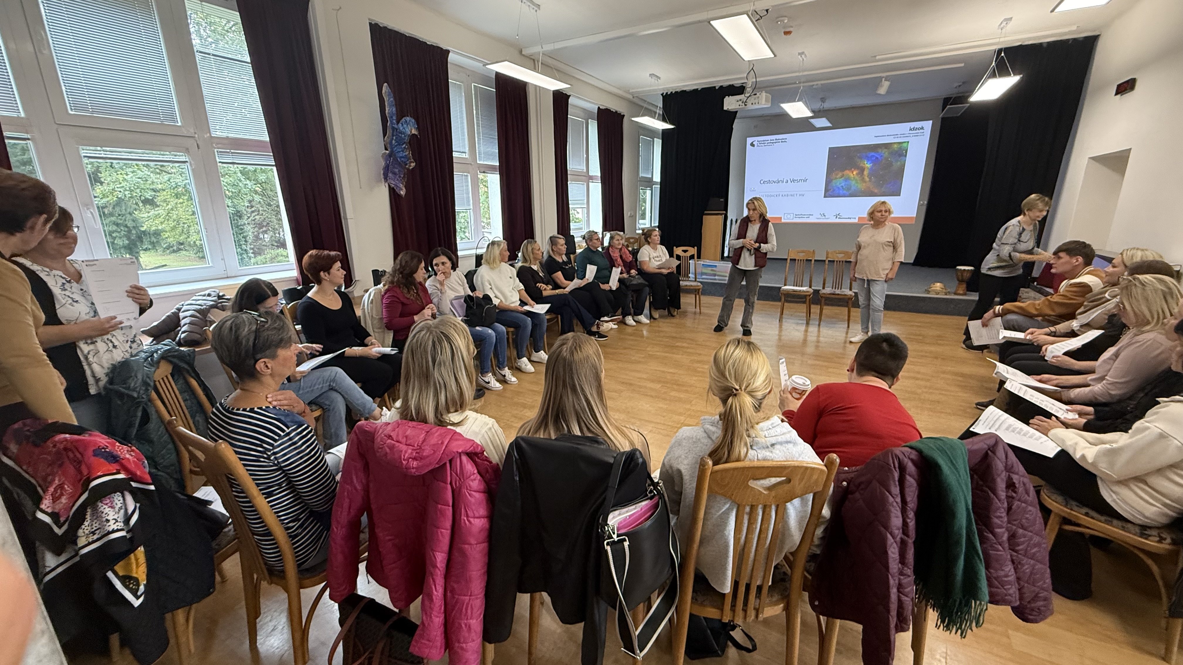 První vzdělávací blok se uskutečnil 30. září 2025 a nesl téma „Vesmír a cestování v předškolním vzdělávání“. Pod vedením Mgr. Beranové a Mgr. Herinkové si účastníci vyzkoušeli praktické aktivity z oblasti hudební výchovy a IT. Zahrnovaly práci s rytmem a Orffovými nástroji, hudebně-pohybové hry i propojení hudby s moderními technologiemi, například s využitím robotických hraček Ozobot a Bee-Bot.