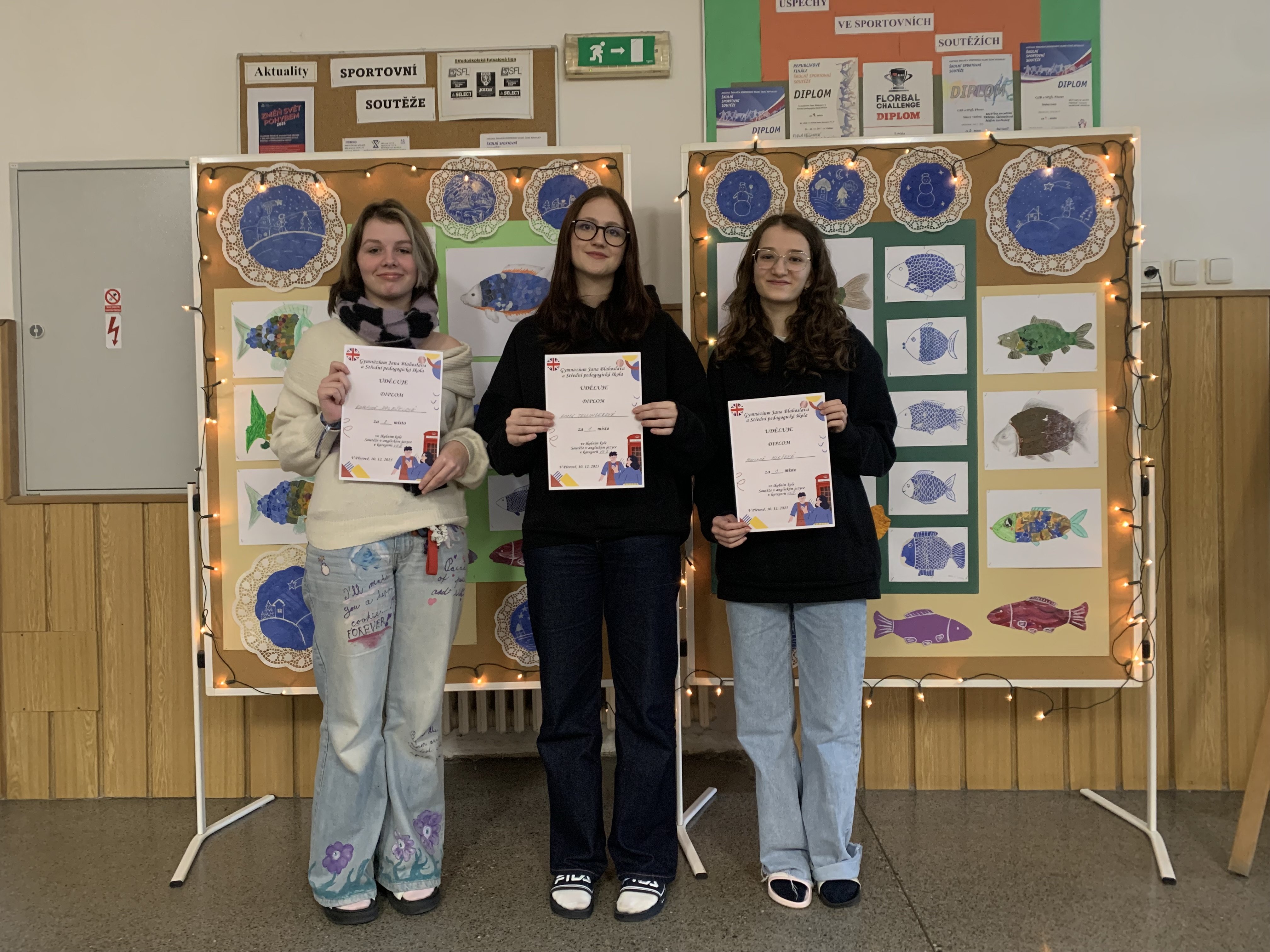 Dne 10. 12. 2025 se na Gymnáziu Jana Blahoslava konalo školní kolo Soutěže v anglickém jazyce. V kategorii VGII se do soutěže zapojilo celkem 19 žáků Primy a Sekundy. Na 1. místě se umístila Aneta Tellingerová ze Sekundy, 2. místo obsadila Kateřina Doleželová z Primy a 3. místo Mariana Mikšová ze Sekundy. Do kategorie G se přihlásilo 15 žáků, u nichž celkovým vítězem se stal Adam Kabilka z Kvarty. Na 2. místě se umístil Daniel Kubík z Tercie a 3. místo obsadil Ondřej Kolla rovněž z Tercie.