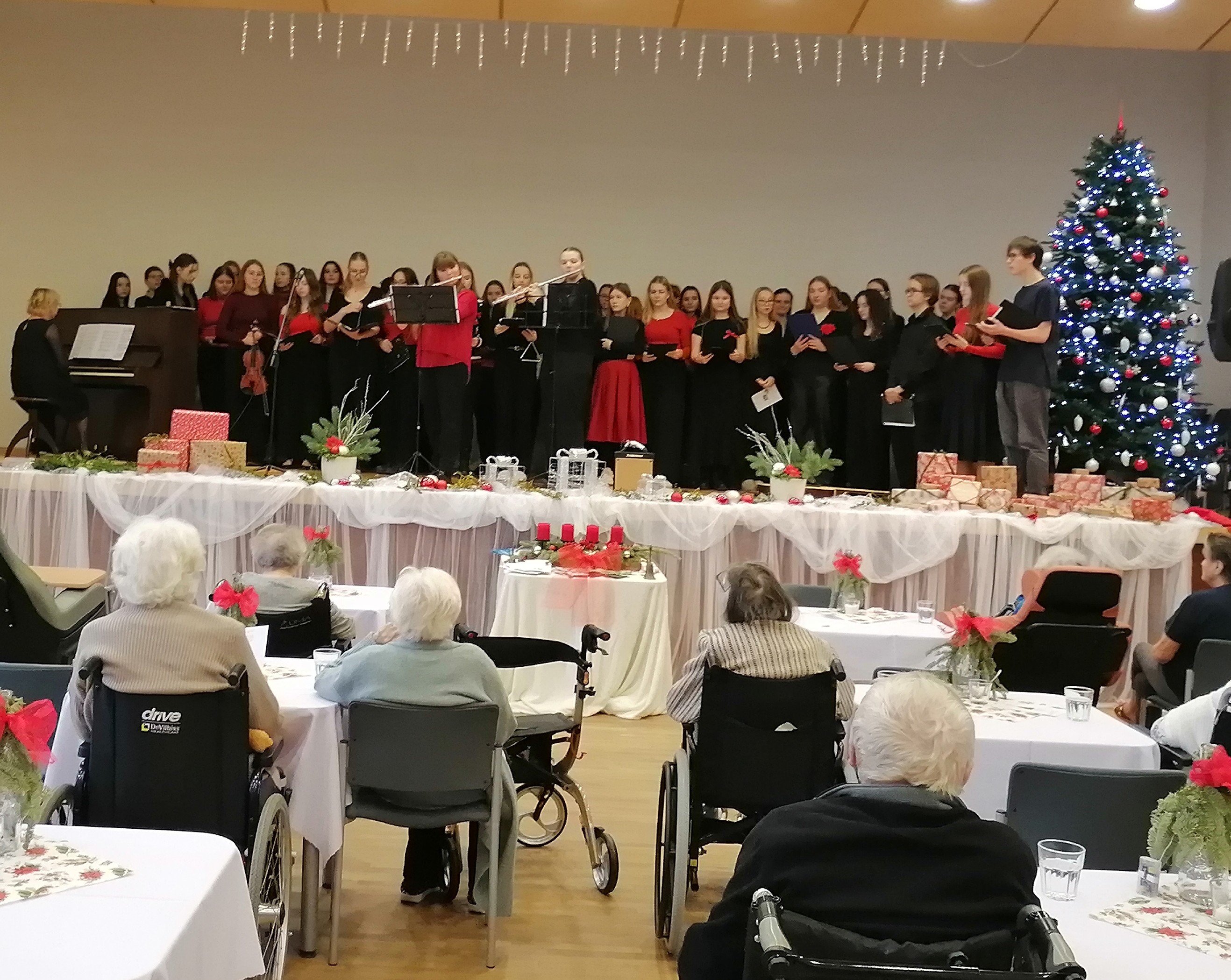 V předvánočním čase se žáci naší školy rozhodli potěšit obyvatele domova seniorů Kabelíkova v Přerově. Dne 16. 12. 2025 se žáci Hudební výchovy – specializace 3. a 4. ročníků vydali do zařízení, aby svým programem přinesli radost a vánoční atmosféru.