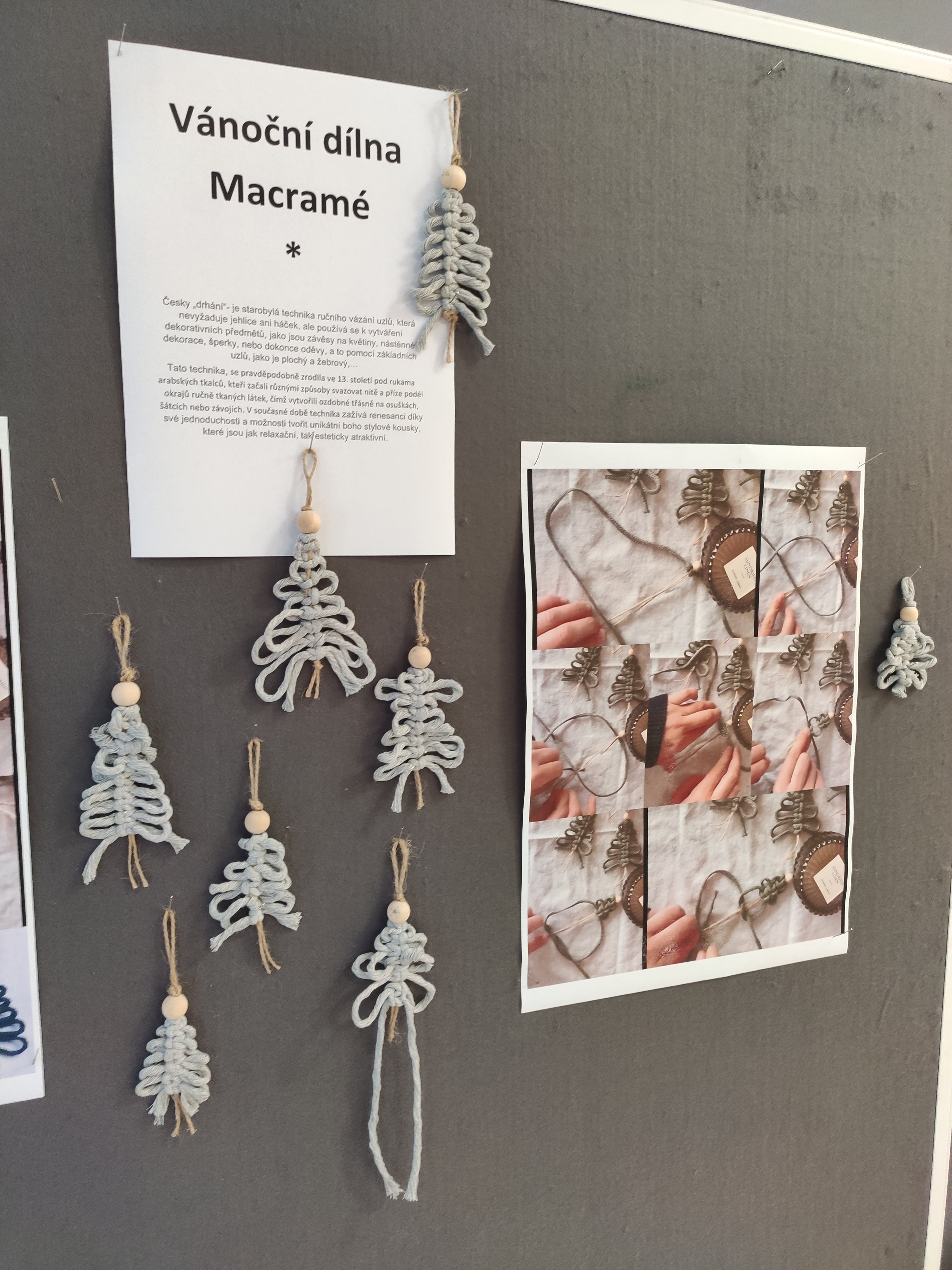 Naši žáci si v posledním předvánočním týdnu zpestřili výuku vánočním workshopem, během kterého si vyzkoušeli techniku macramé. V tvořivých dílnách vznikaly originální dekorace – vánoční stromečky i andělé. Workshop probíhal ve vestibulu školy a zároveň také na odloučeném pracovišti v Olomouci. Celá akce se nesla v příjemné adventní atmosféře a podpořila tvořivost i jemnou motoriku žáků.