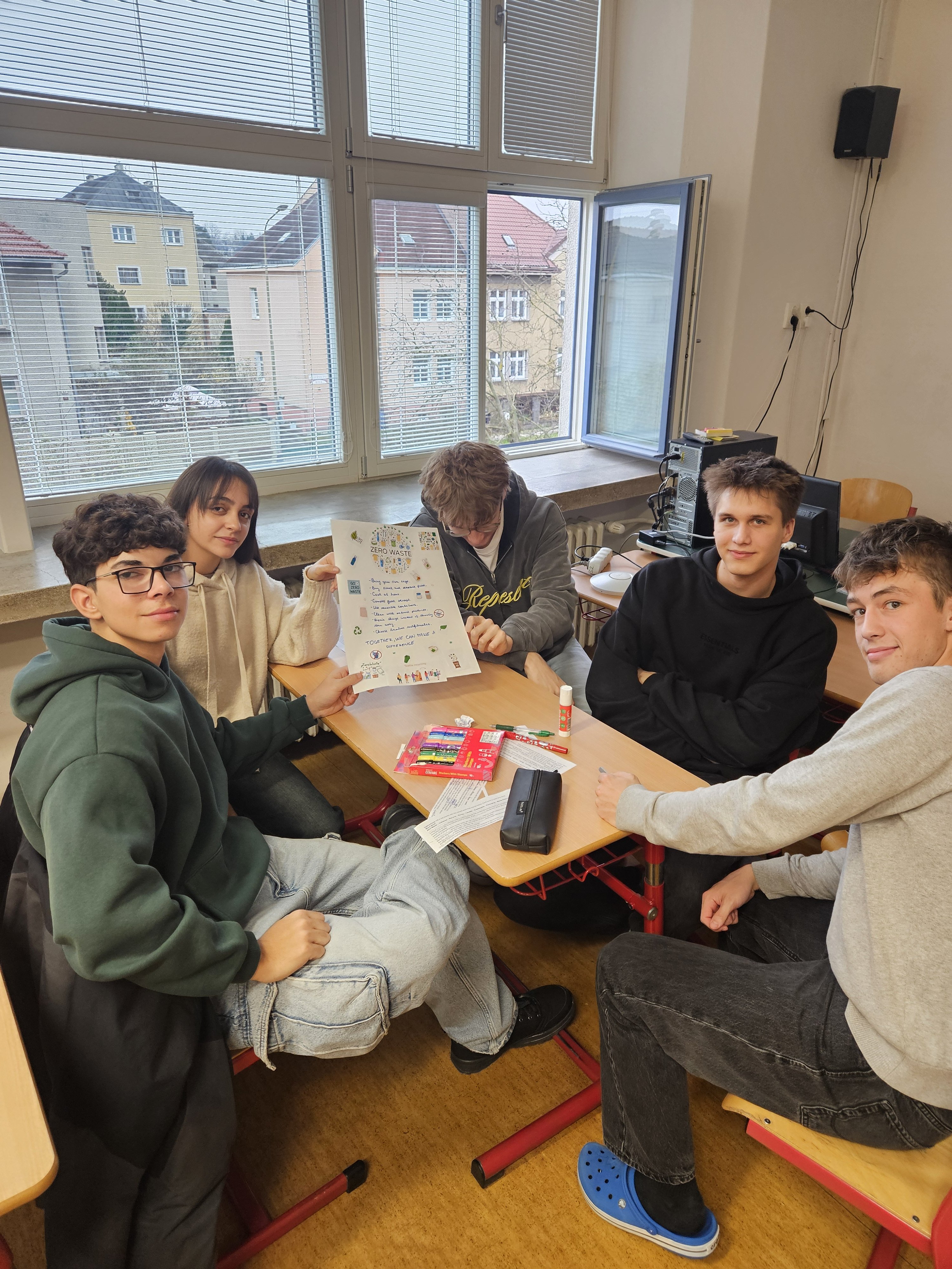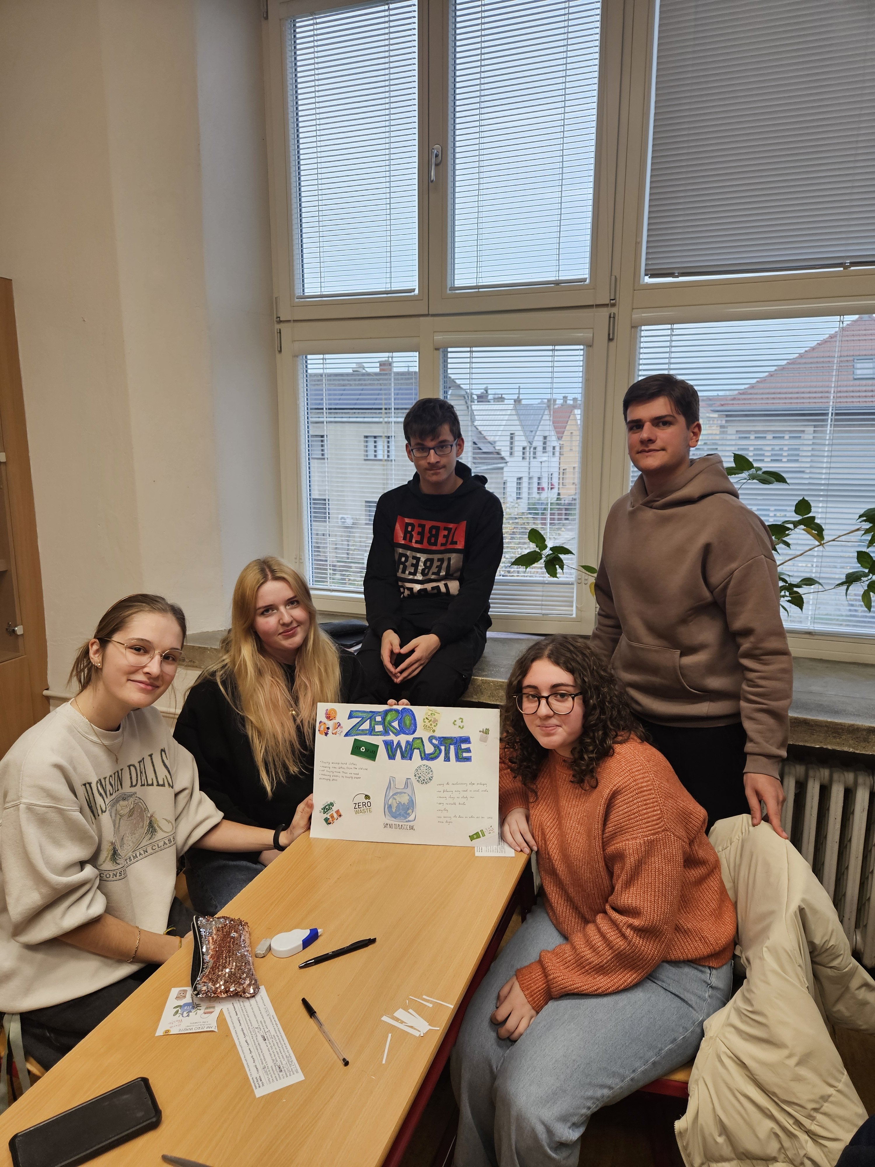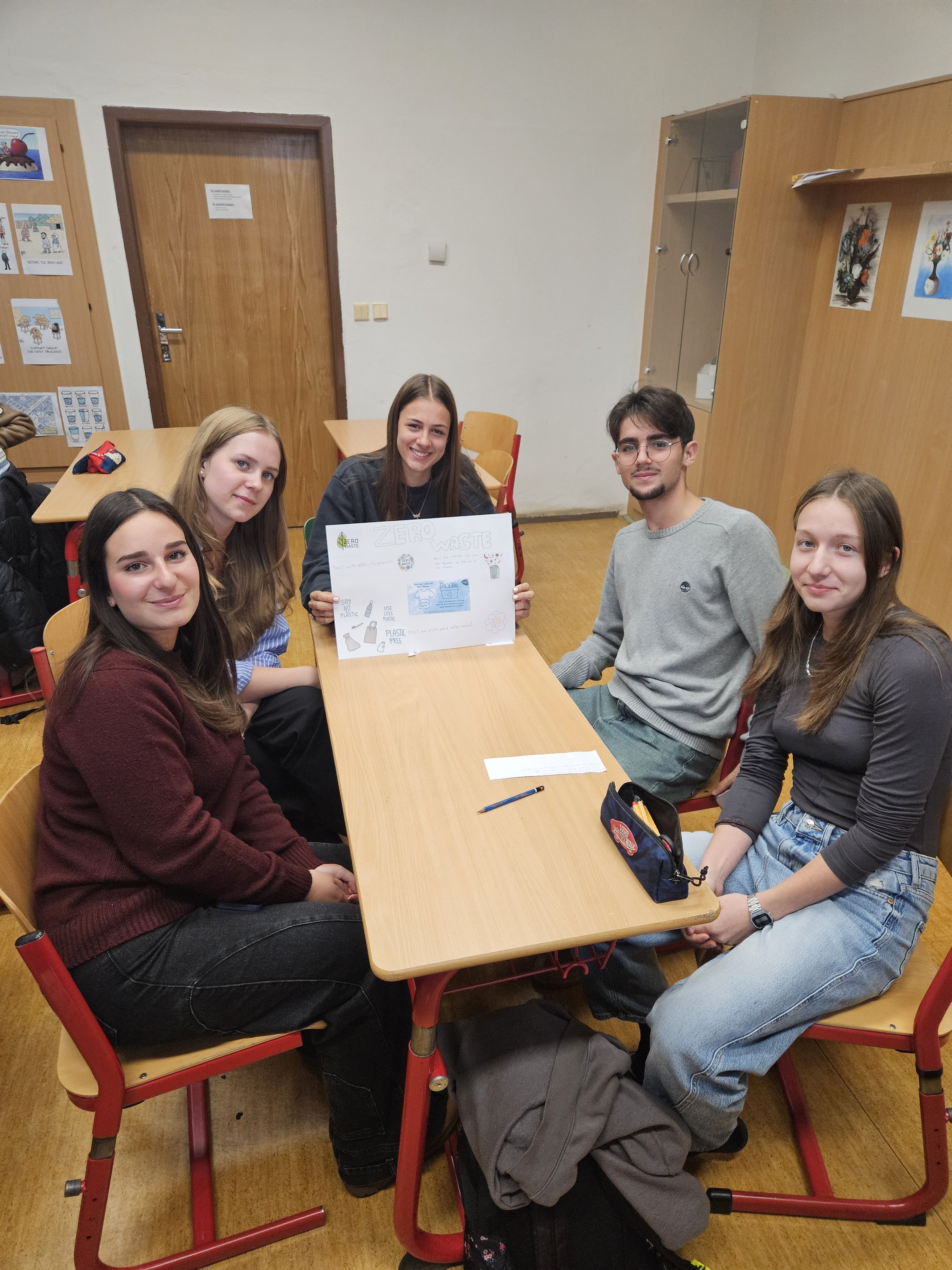 V pondělí 10. listopadu 2025 se žáci třídy 3. A zúčastnili projektové hodiny anglického jazyka na téma Zero Waste, společně se žáky z Itálie, kteří jsou aktuálně na naší škole v rámci programu Erasmus+.