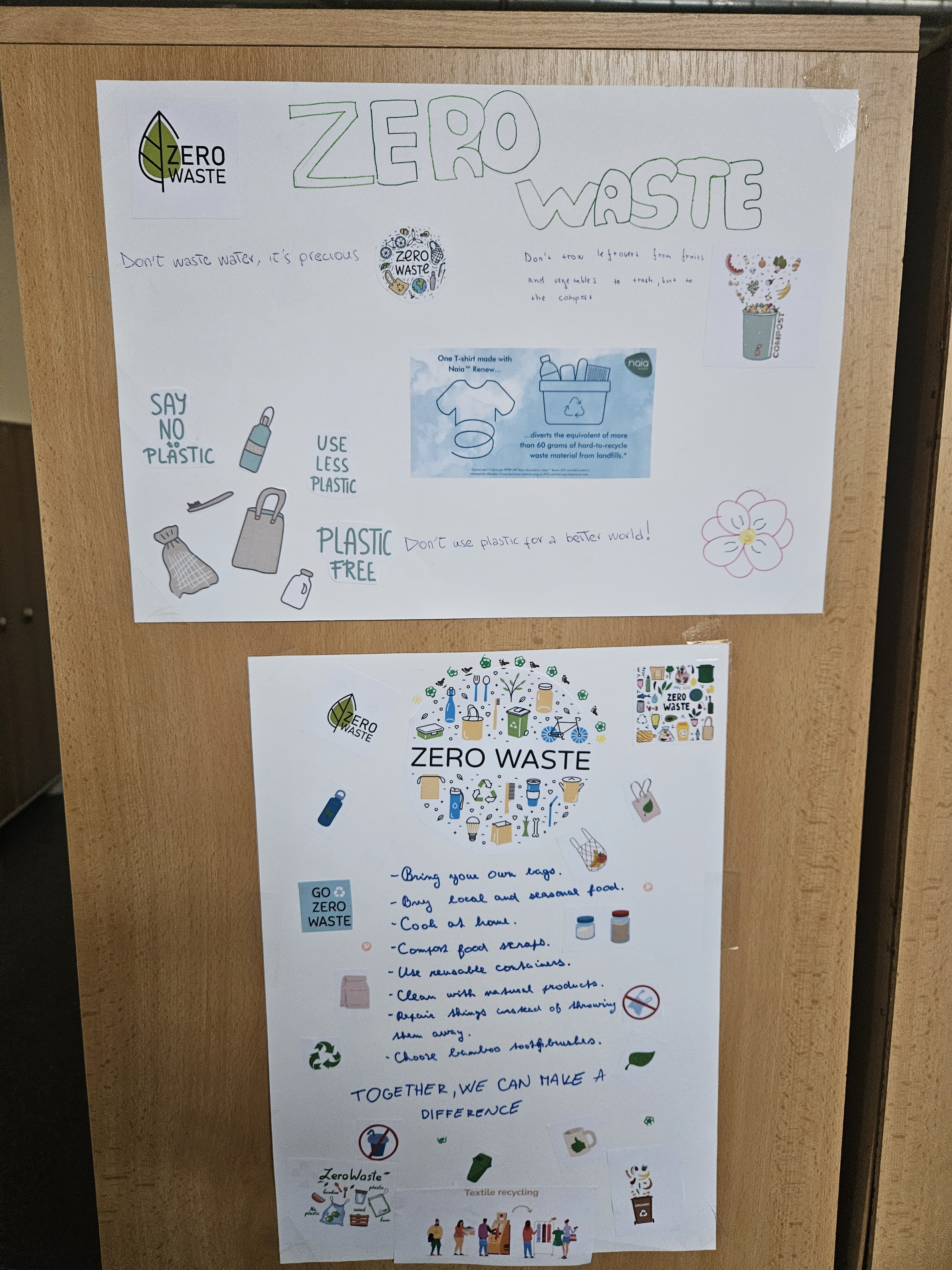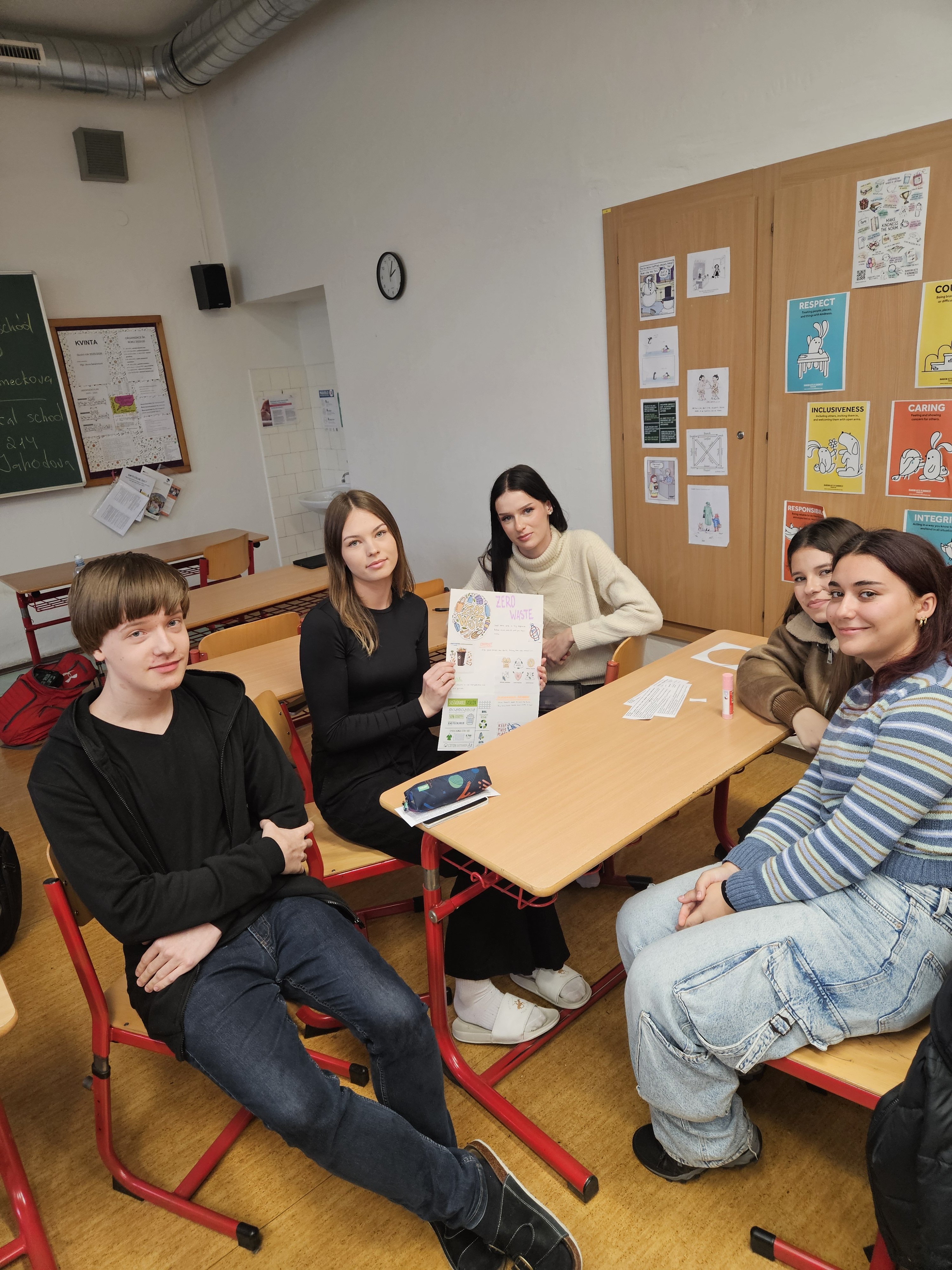 Na závěr hodiny žáci vytvořili plakáty s tématem Zero Waste, které kreativně shrnují jejich nápady a poznatky.
