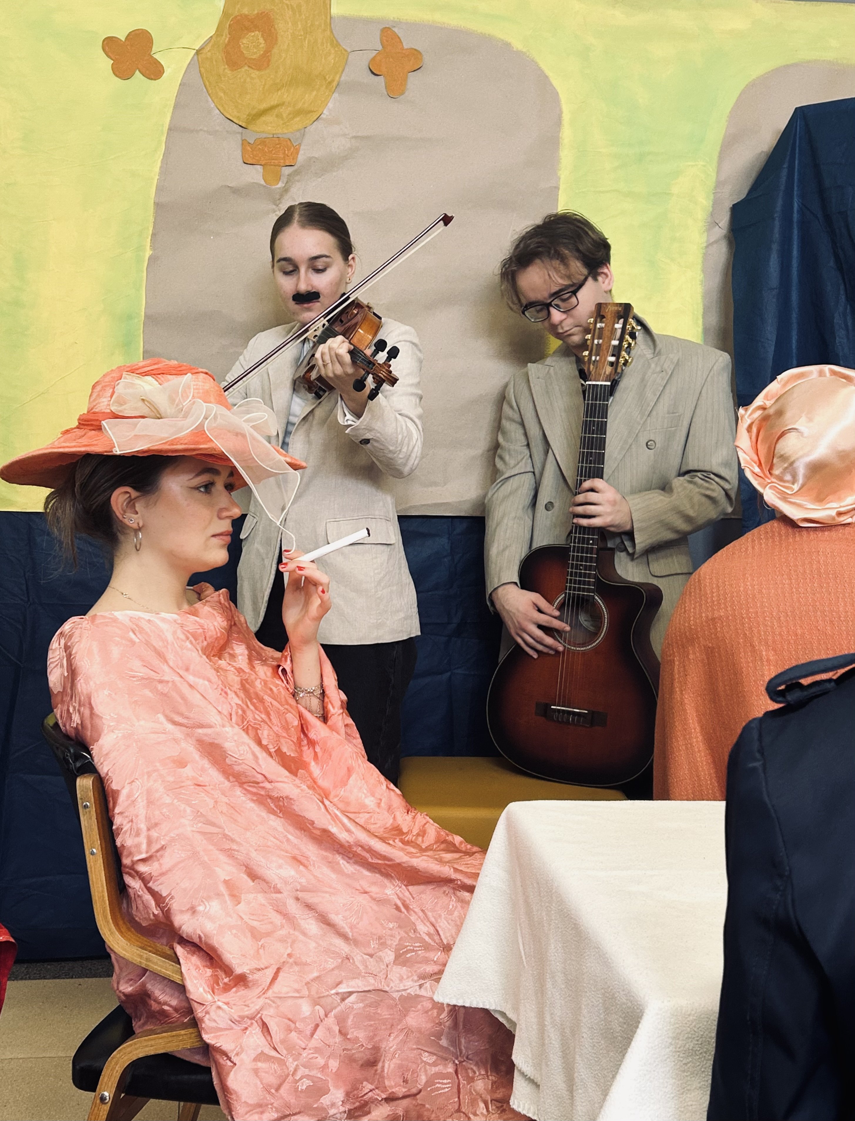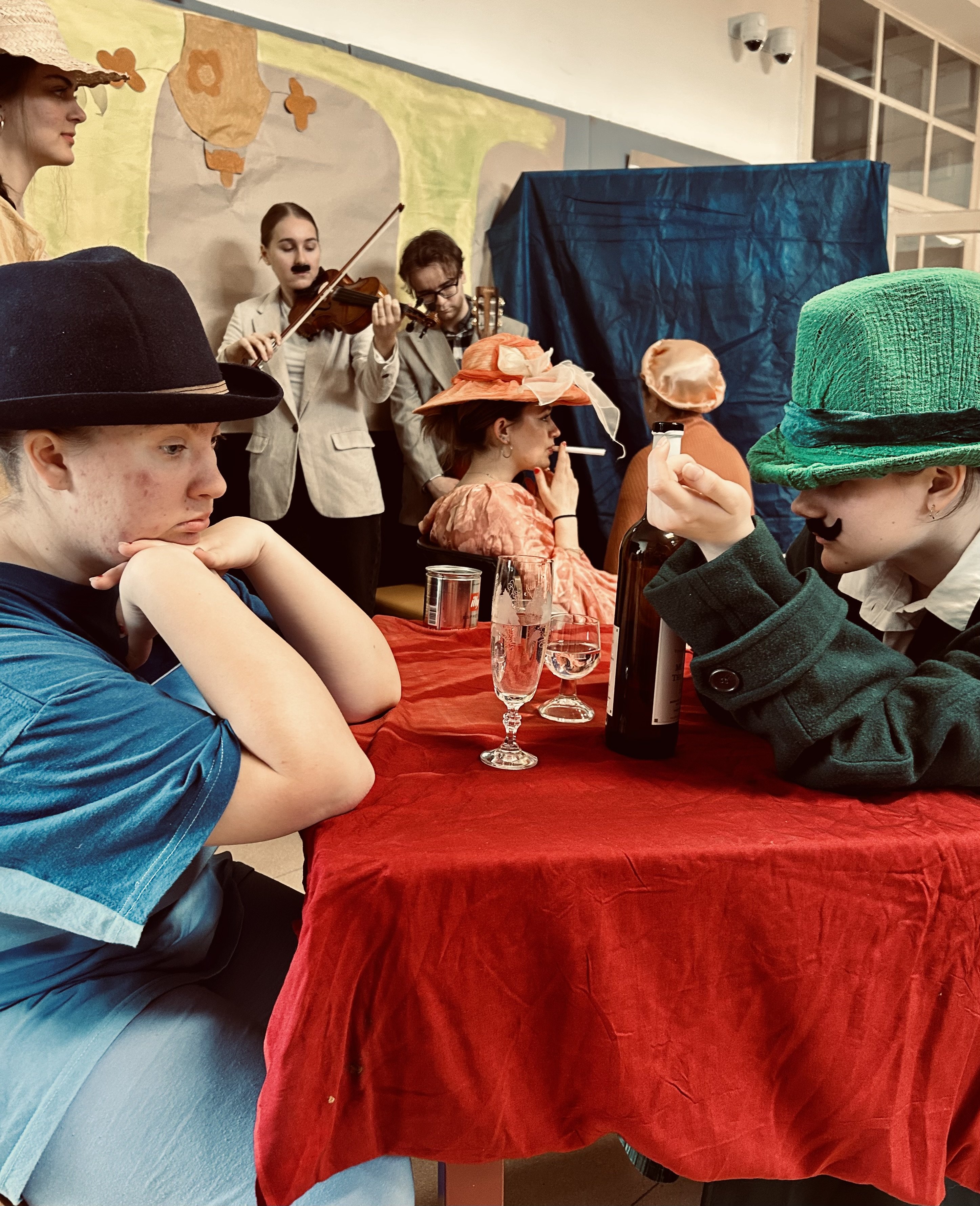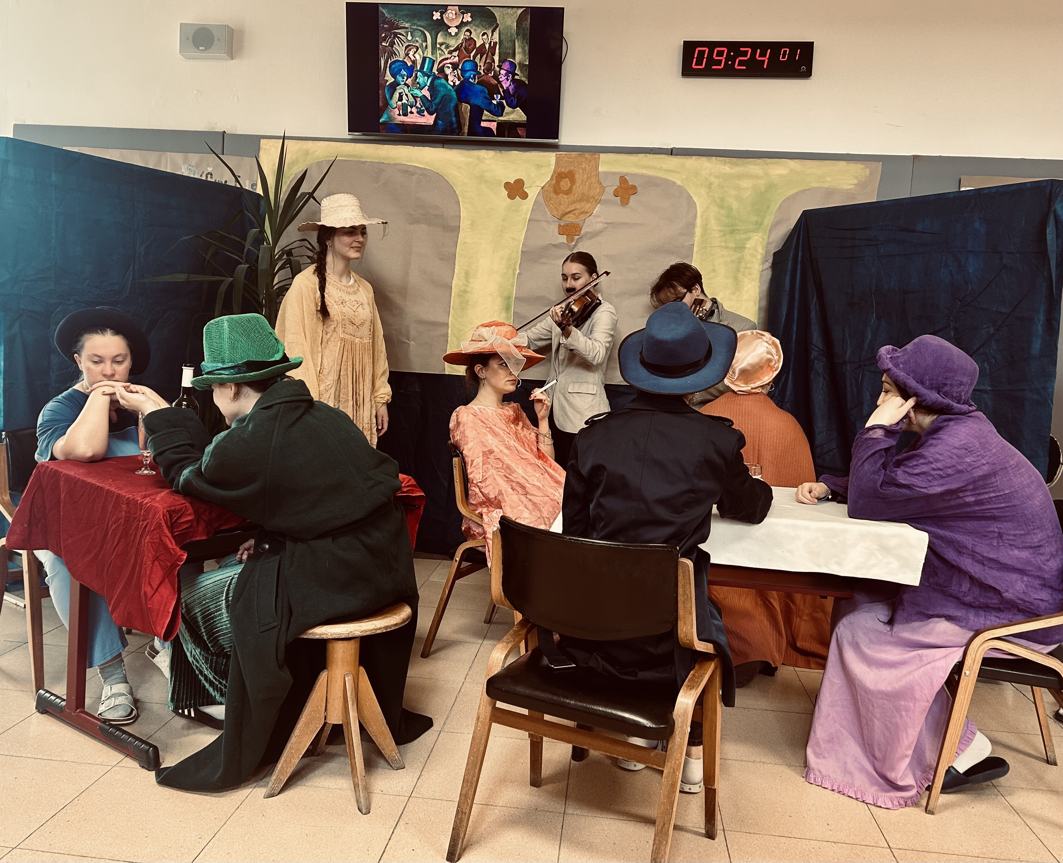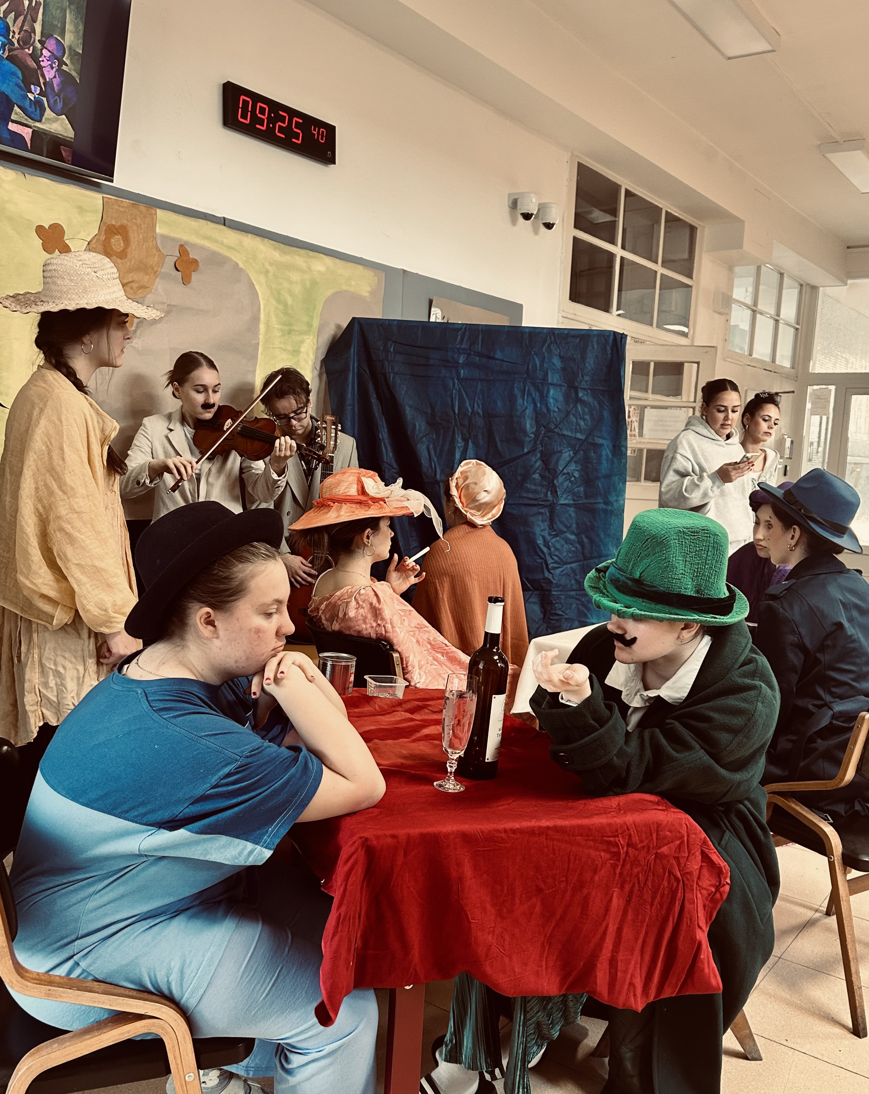 V pátek 27. 3. 2026 vytvořila třída 3. CP/A2 ve vestibulu školy krásný živý obraz, inspirovaný obrazem Kavárna od českého malíře Bohumila Kubišty.